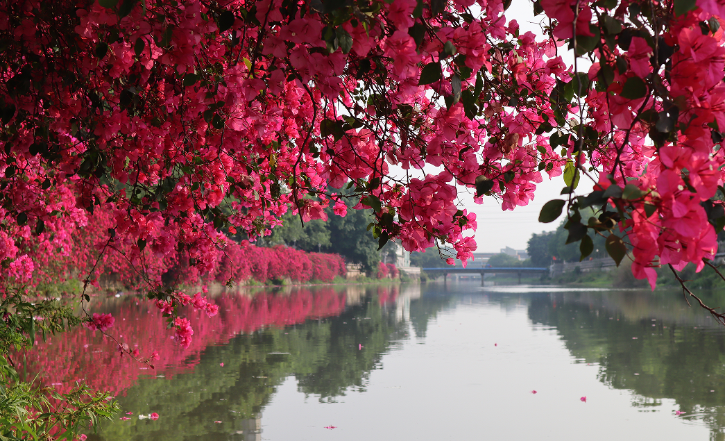一是结合公园城市、美丽圩镇建设,在城市公园、广场、道路以及天桥、河岸等区域,种植了水红、绿樱、小叶紫等品种的簕杜鹃39万株,打造了许多市花绽放的美景。