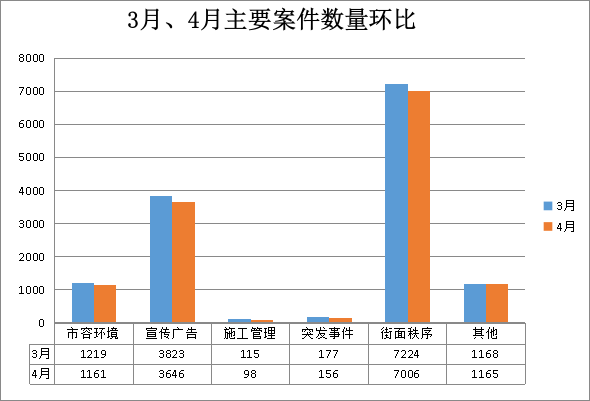 案件类别 | 4月(宗) | 3月(宗) | 增/减(宗) | 结案数(宗) | 结案率(%) | 案件主要类型 |