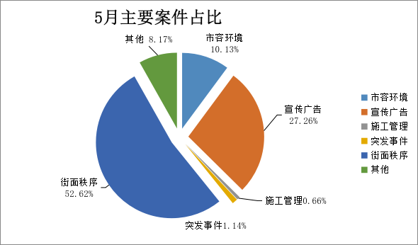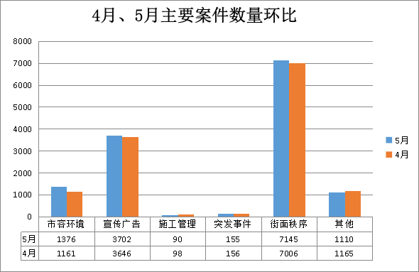 案件类别 | 5月(宗) | 4月(宗) | 增/减(宗) | 结案数(宗) | 结案率(%) | 案件主要类型 |