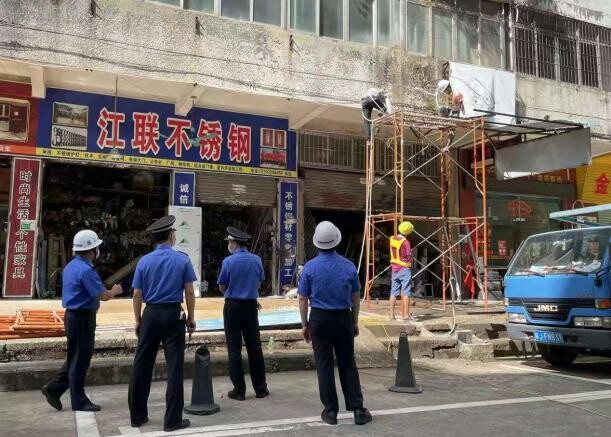 二、广泛宣传,摸底排查,制定工作清单。11月份,市城市管理和综合执法局组织执法人员对辖区主次干道、商圈、社区等重点路段存在安全隐患的残旧、弃置广告及建构(筑)物进行全面‘体检’,全面梳理并制定户外广告负面清单。同时广泛开展法律宣传,与违规设置广告牌的户外广告设施产权人积极沟通协调,讲解户外广告专项整治的必要性与重要性,引导群众自觉配合,为专项整治行动营造良好的舆论氛围。