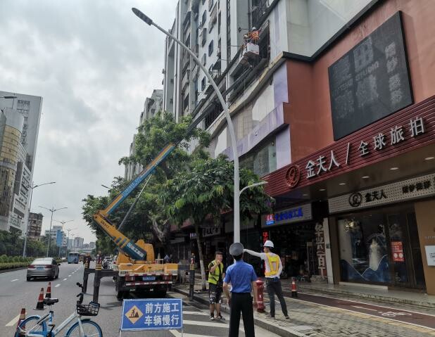 为进一步改善市容环境,提升城市“颜值”,消除安全隐患,江门市城市管理和综合执法局、蓬江区城市管理和综合执法局联合开展户外广告专项整治行动,对存在安全隐患的辖区沿街残旧、弃置广告及建构(筑)物进行清理,进一步规范城区户外广告管理,为市民打造安全美观的城市环境,切实提升群众的幸福感和满意度。