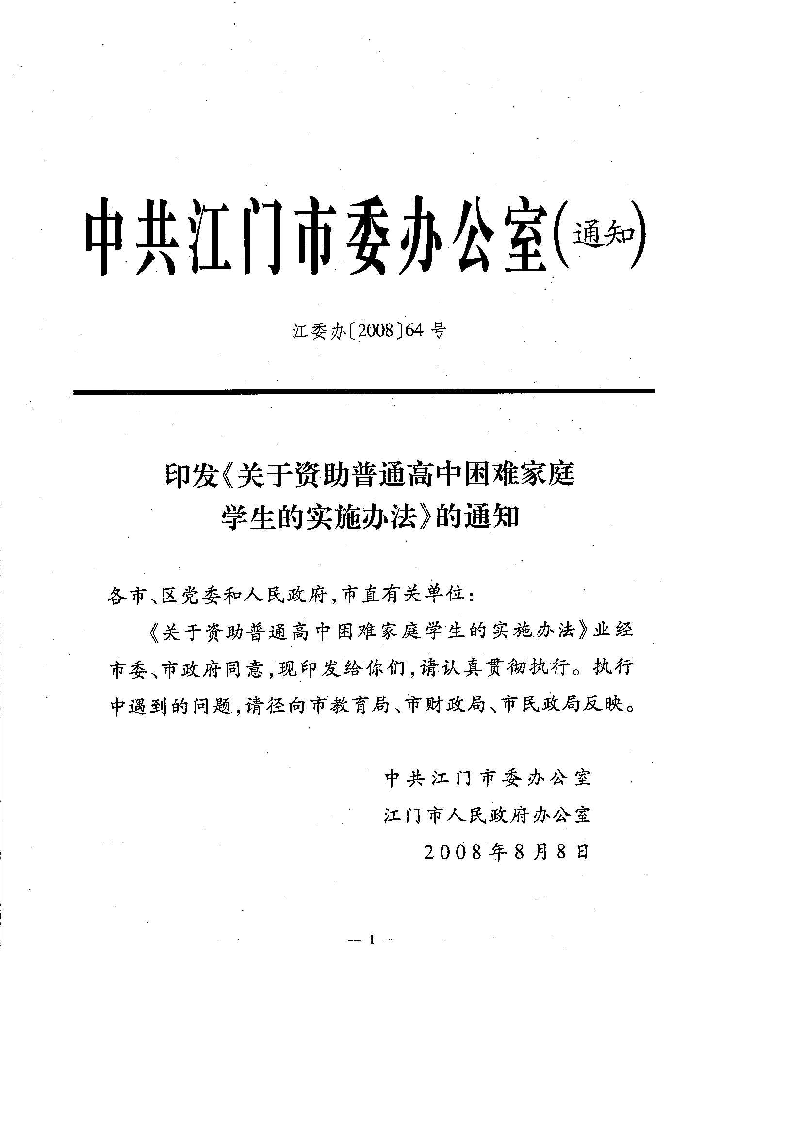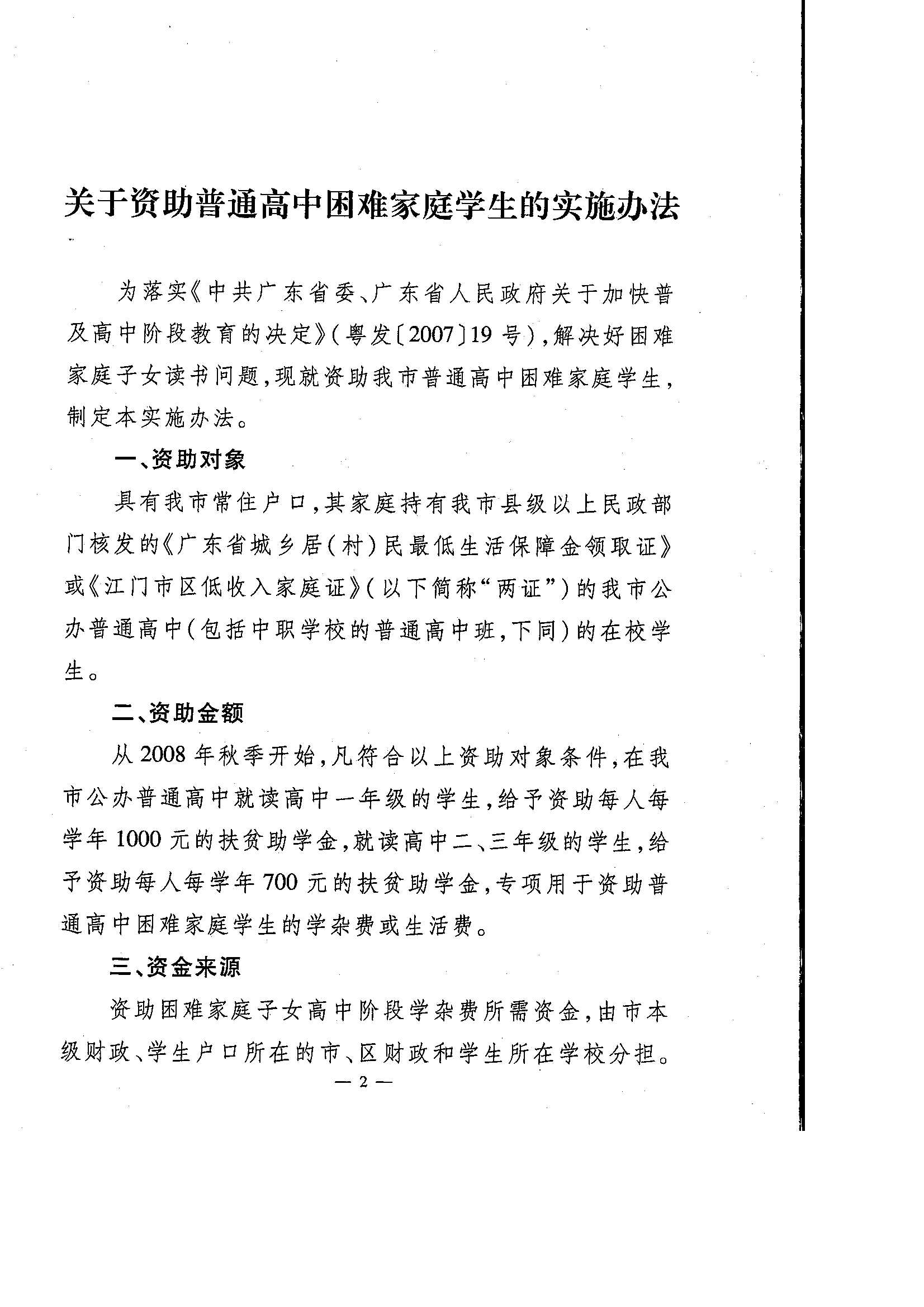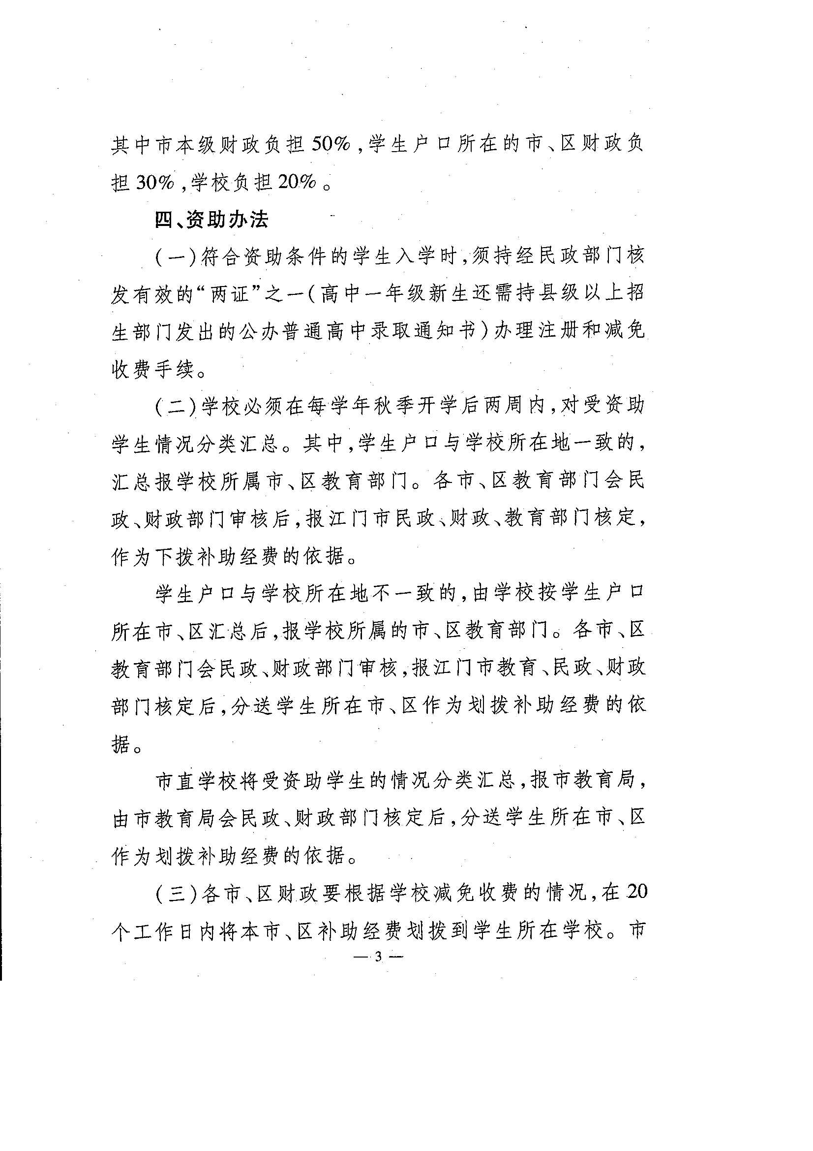 印发《关于资助普通高中困难家庭学生的实施办法》的通知_政策文件_江门市财政局
