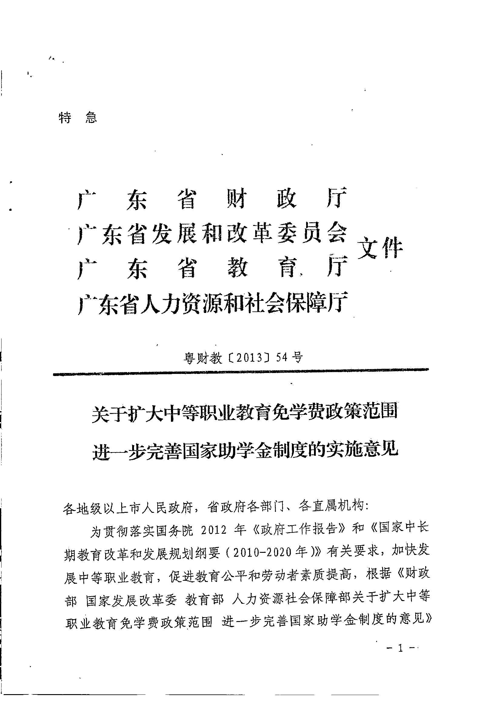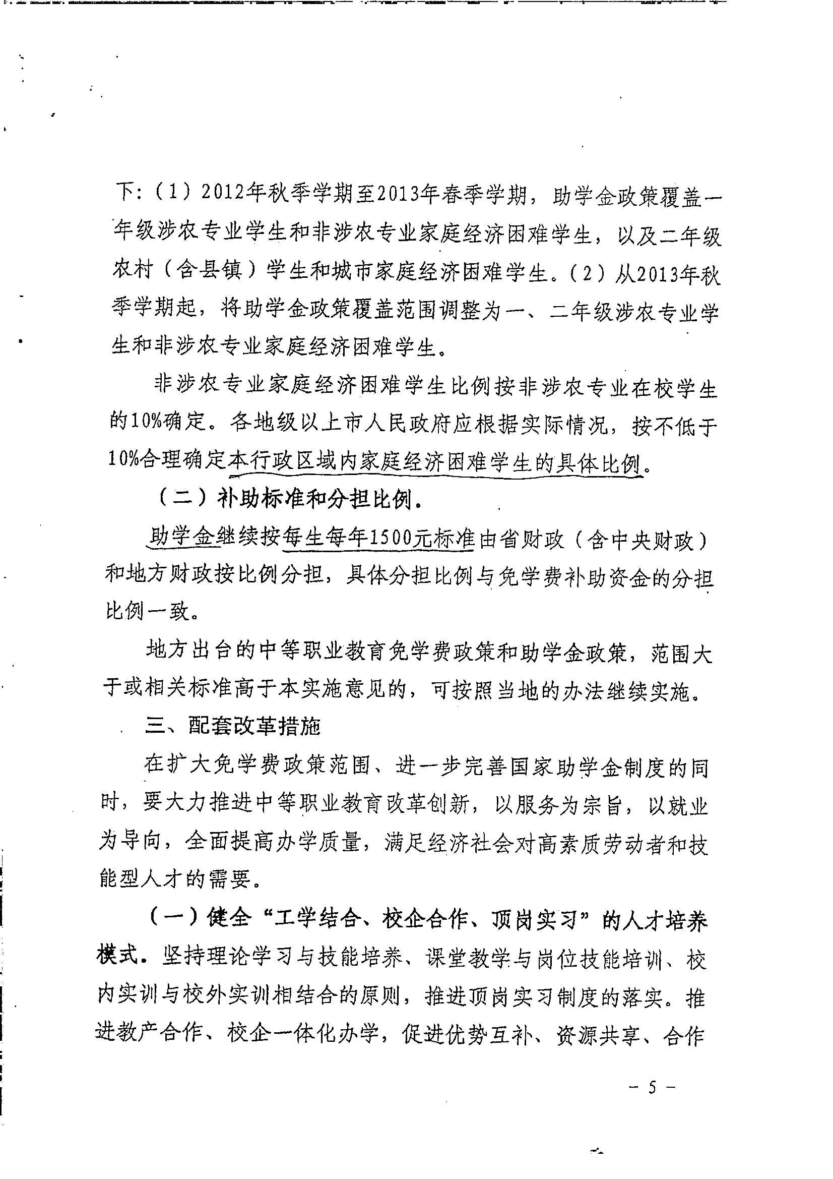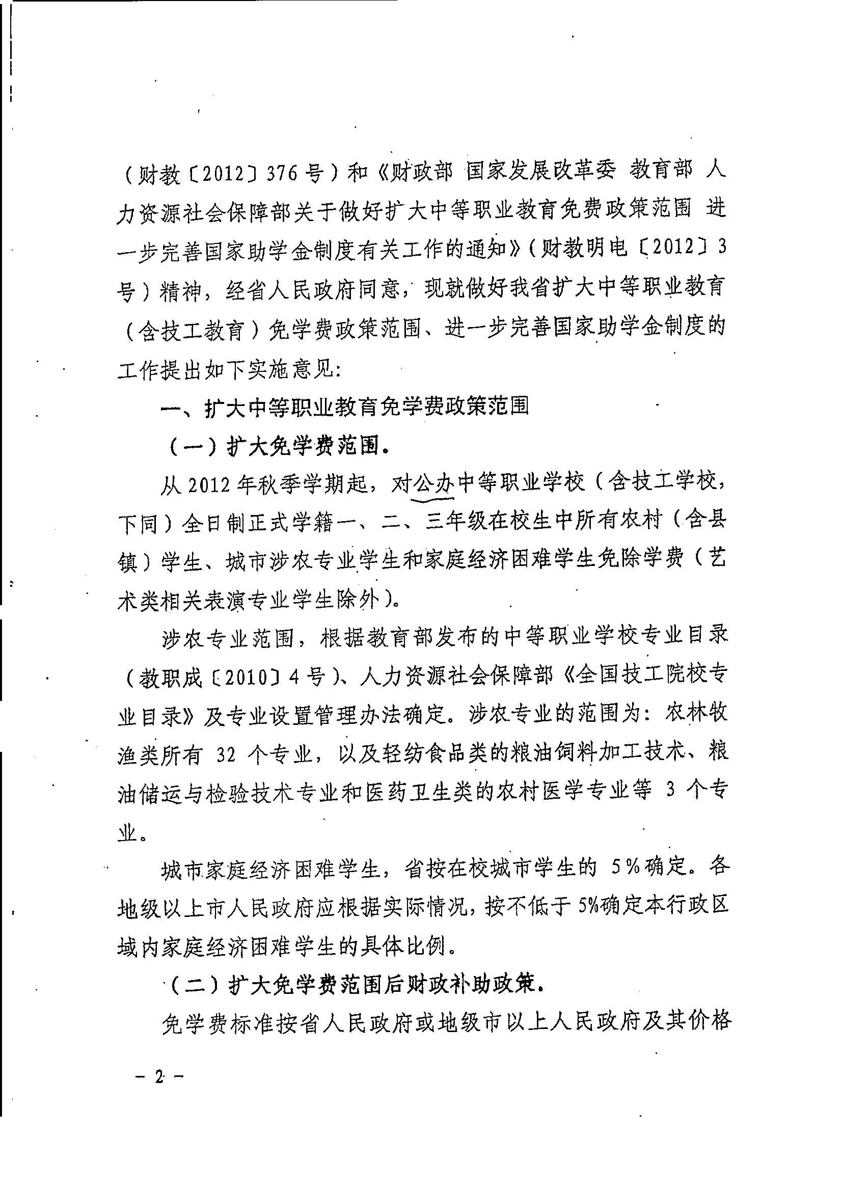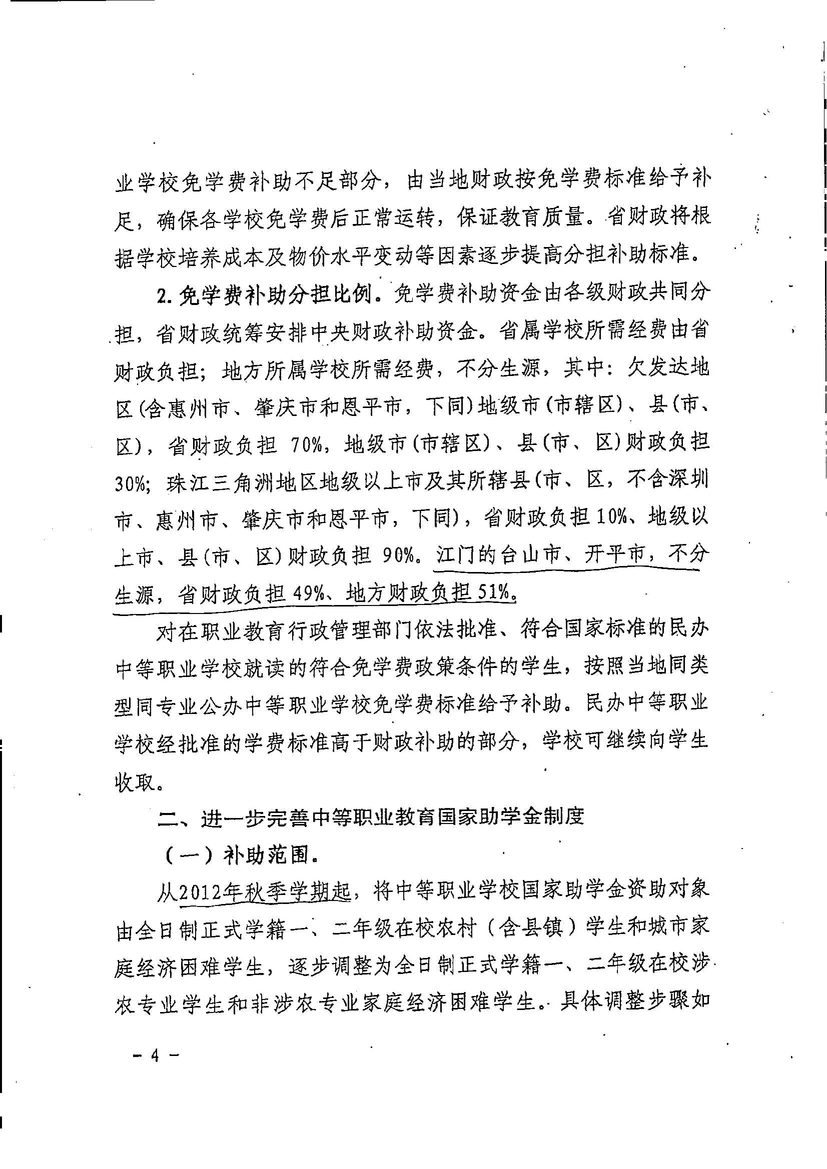 关于扩大中等职业教育免学费范围进一步完善国家助学金制度的实施意见_政策文件_江门市财政局