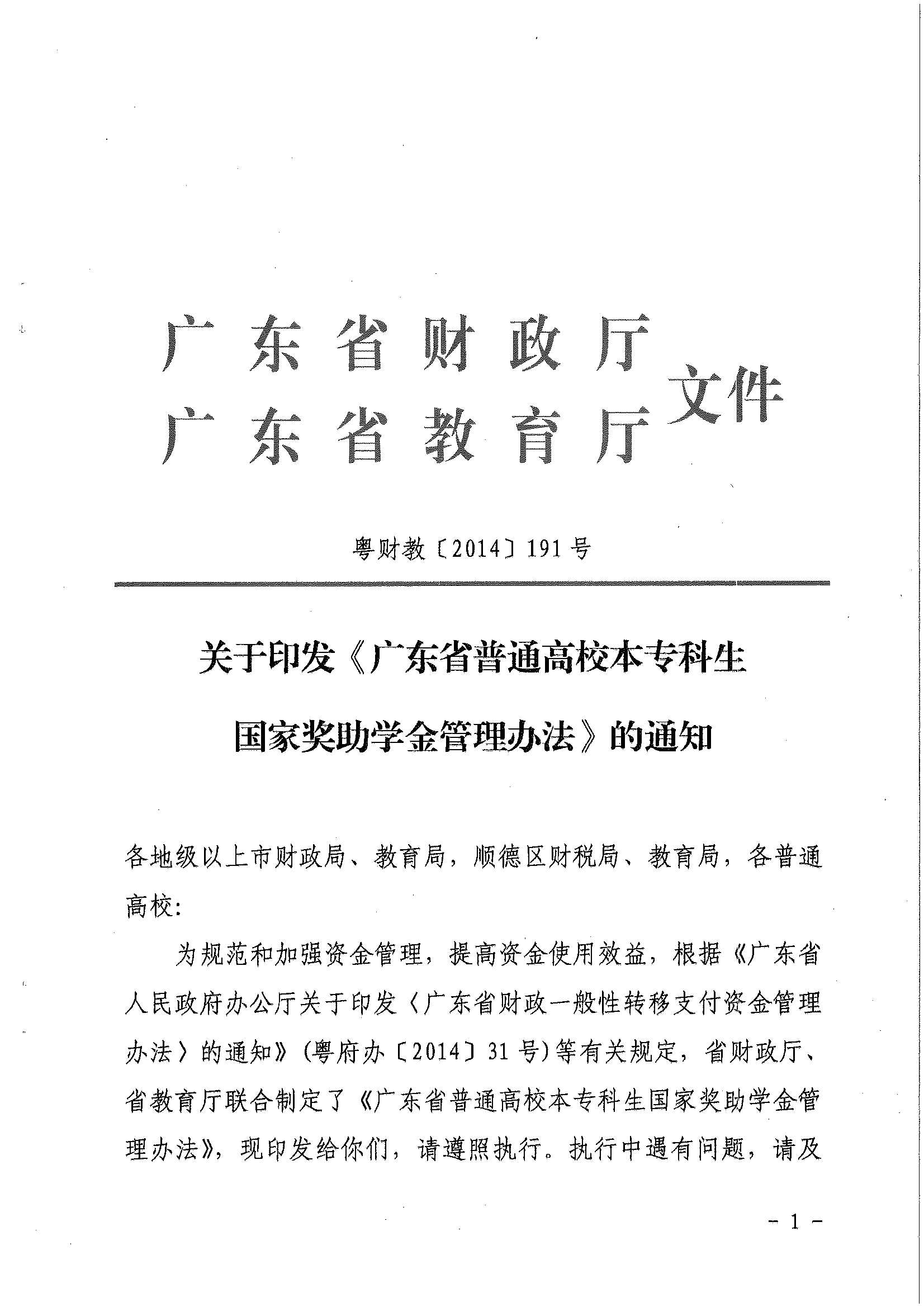 关于印发〈广东省普通高校本专科生国家奖助学金管理办法〉的通知_政策文件_江门市财政局