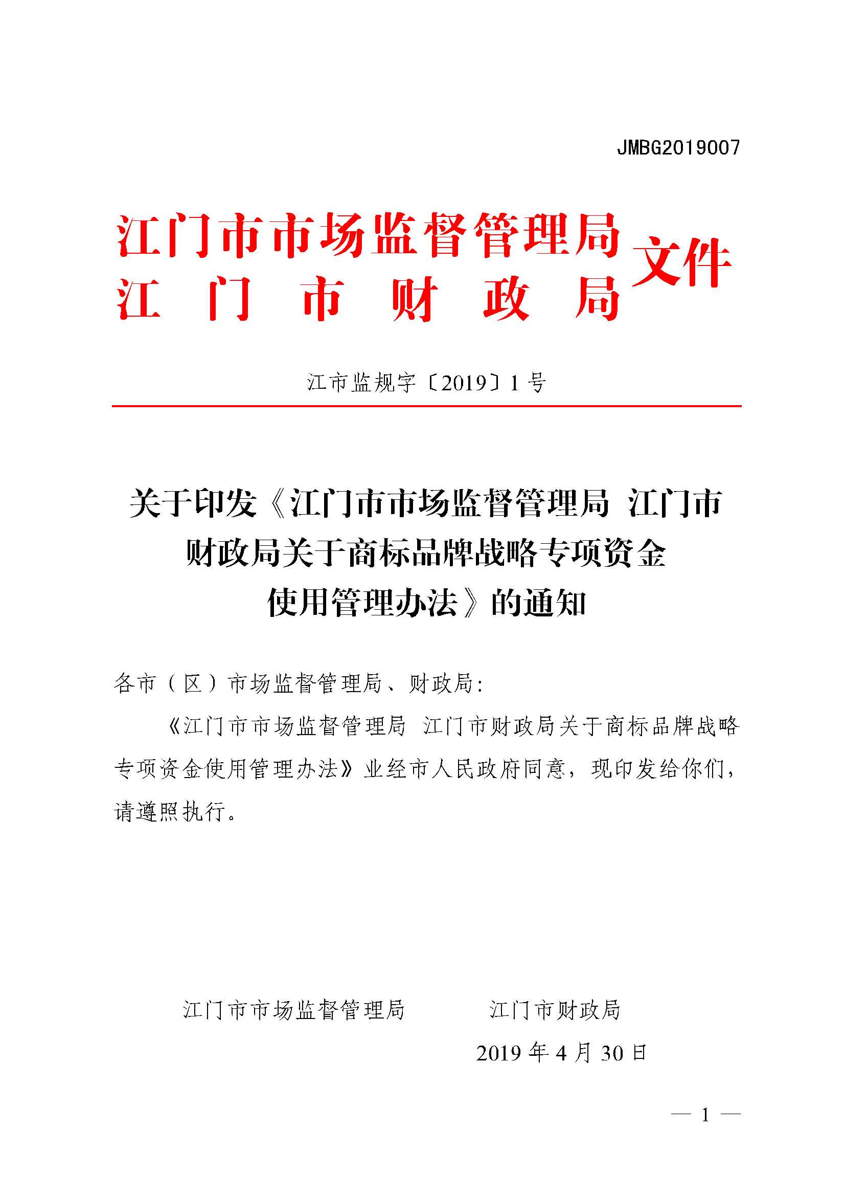 关于印发《太阳3娱乐 江门市财政局关于商标品牌战略专项资金使用管理办法》的通知_政策解读_江门市财政局
