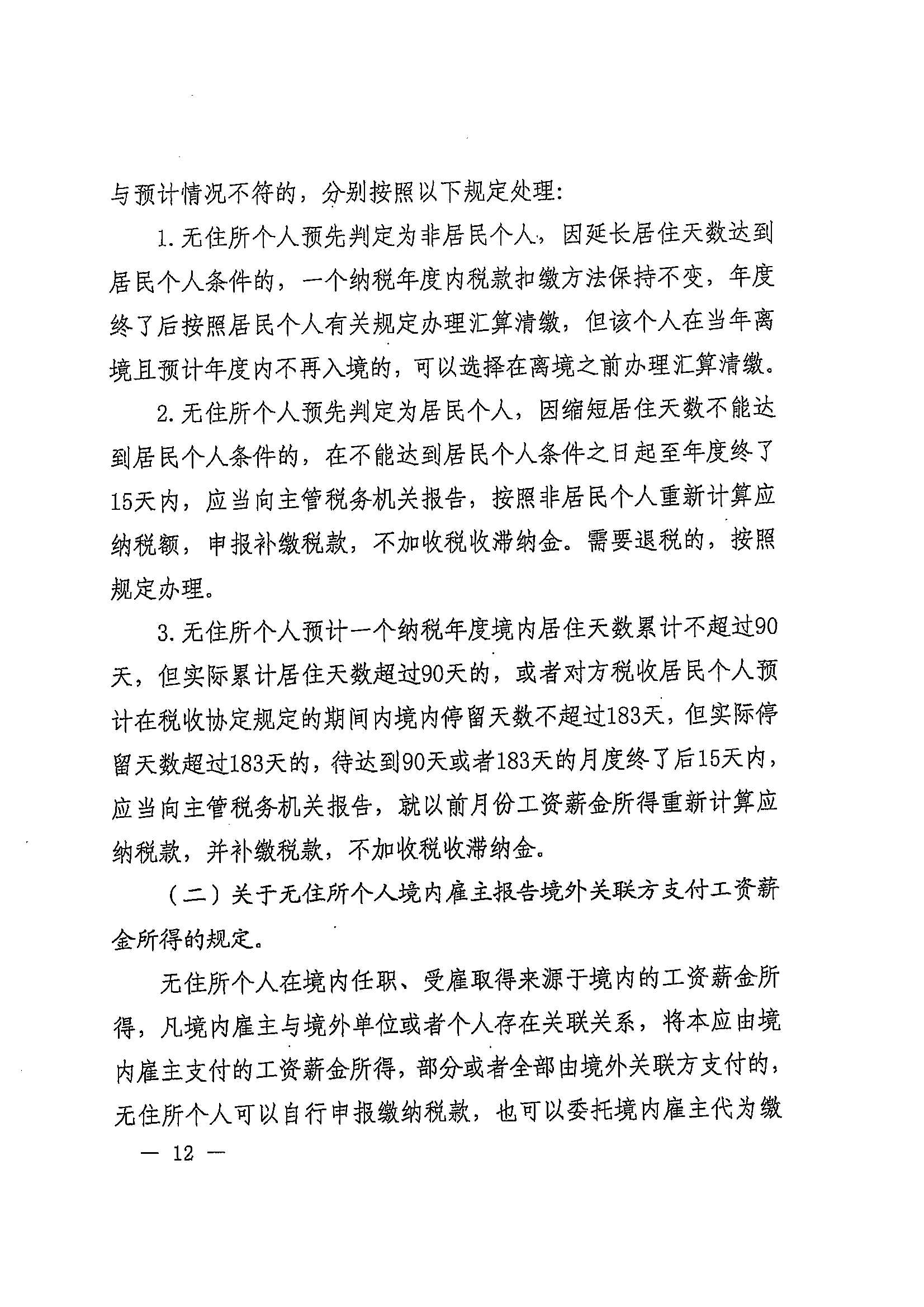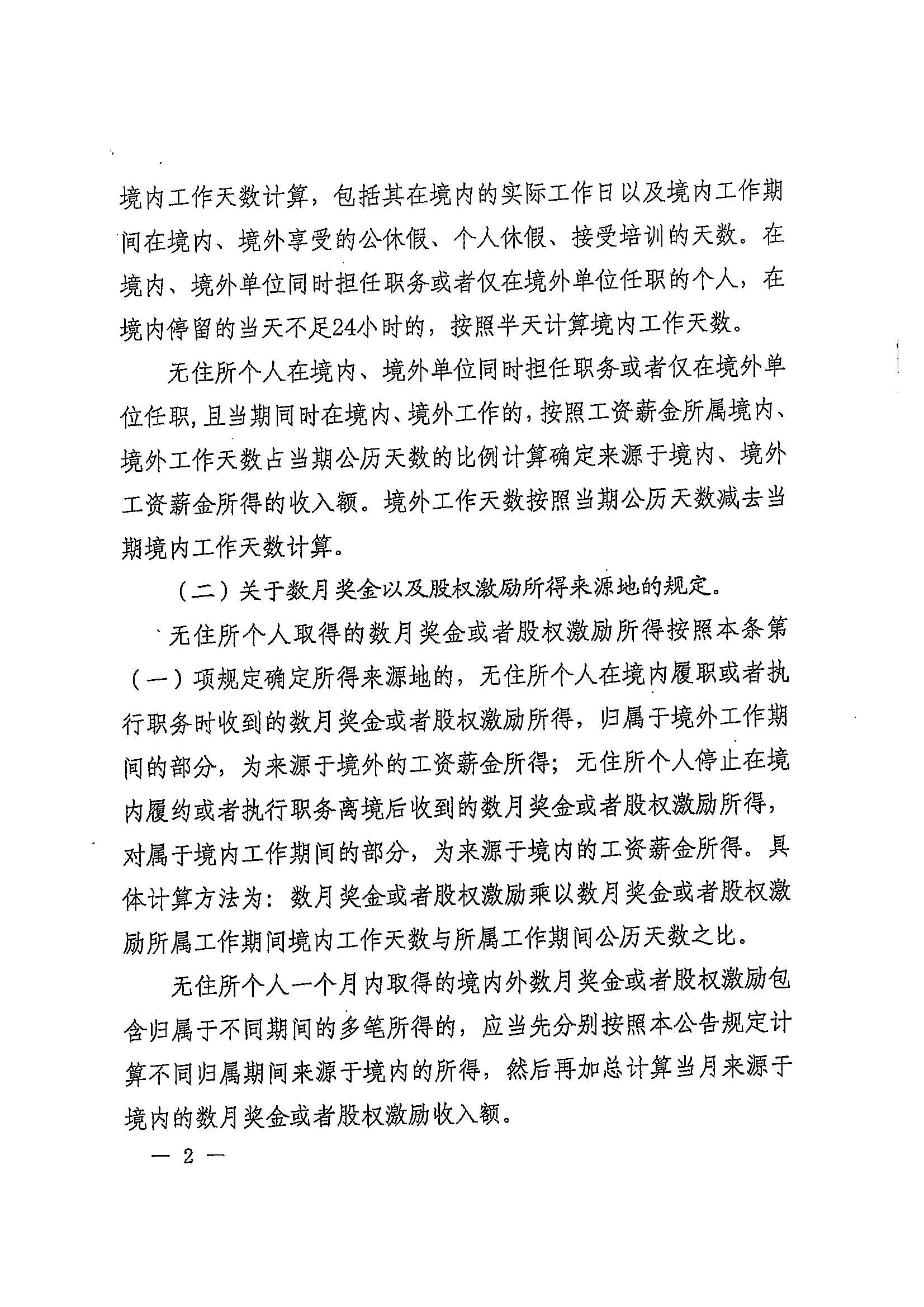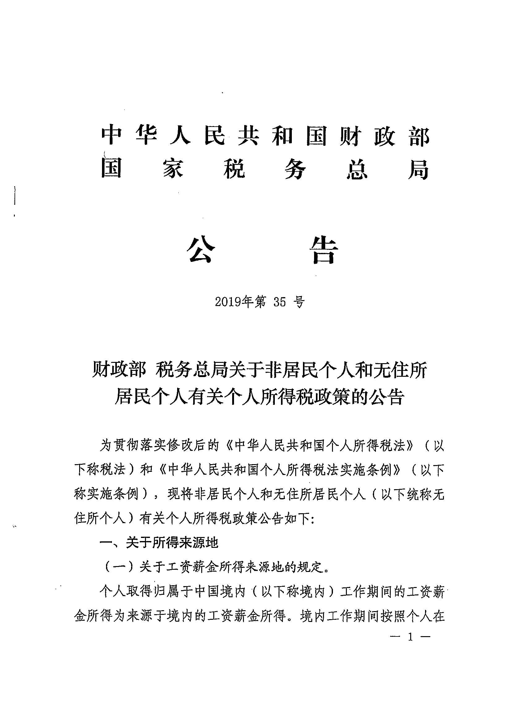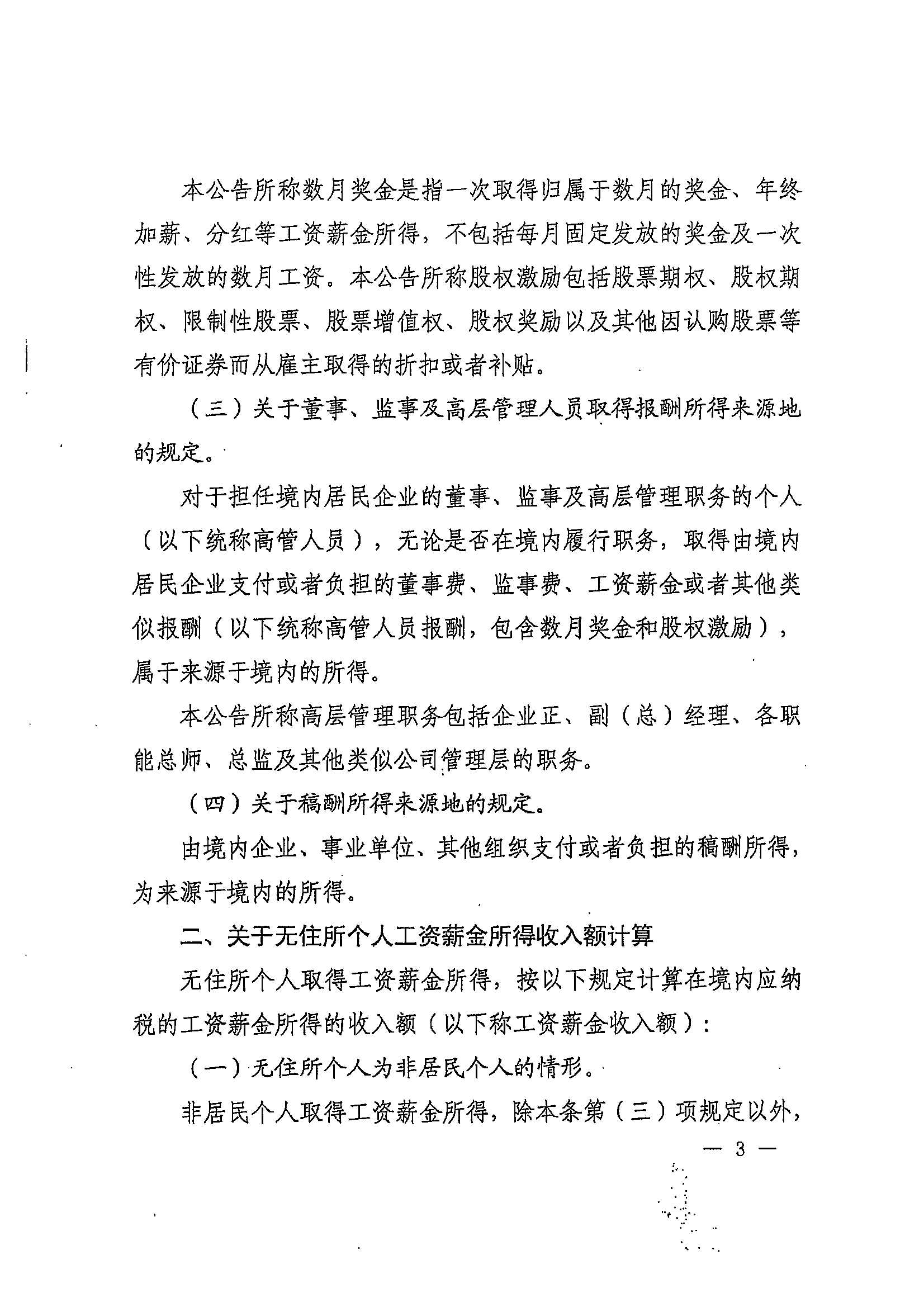 财政部 税务总局关于非居民个人和无住所居民个人有关个人所得税政策的公告_政策文件_江门市财政局