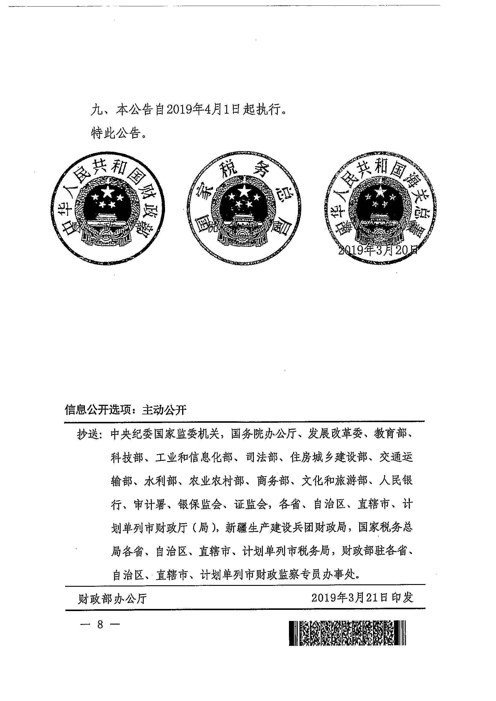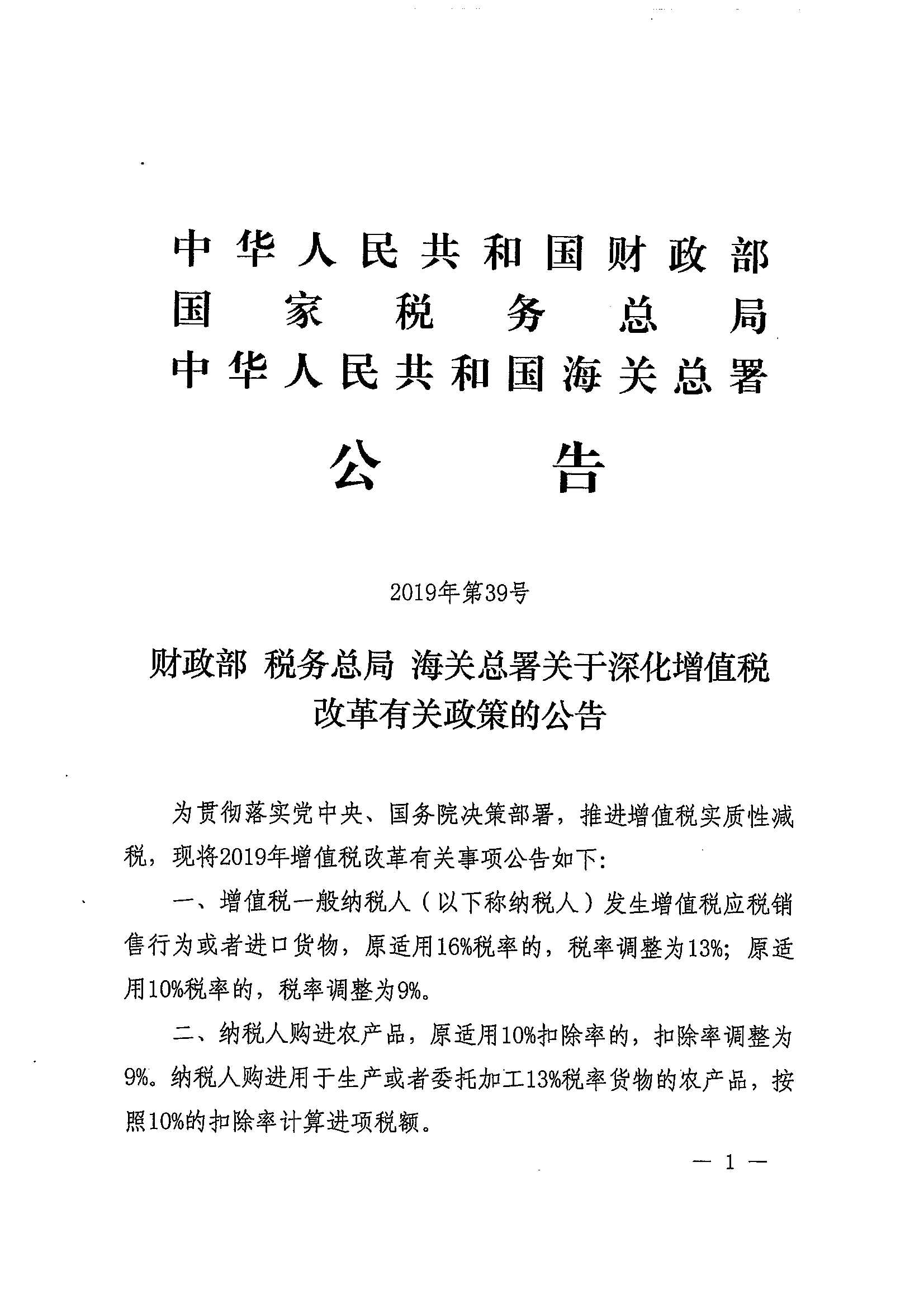 财政部 税务总局 海关总署关于深化增值税改革有关政策的公告_政策文件_江门市财政局