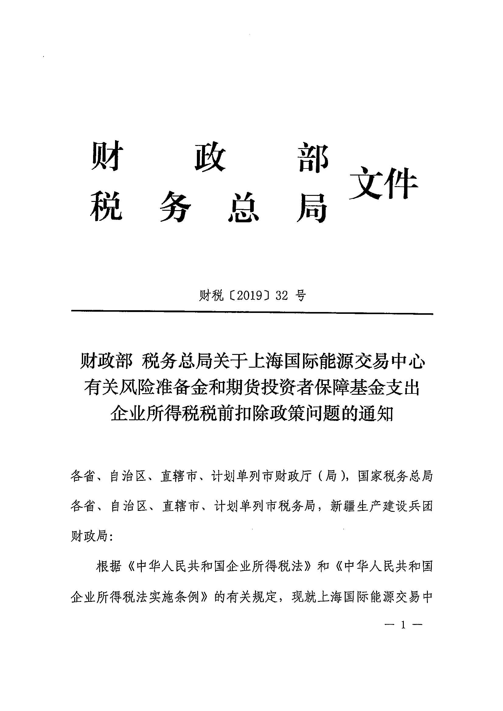 财政部 税务总局关于上海国际能源交易中心有关风险准备金和期货投资者保障基金支出企业所得税税前扣除政策问题的通知_政策文件_江门市财政局