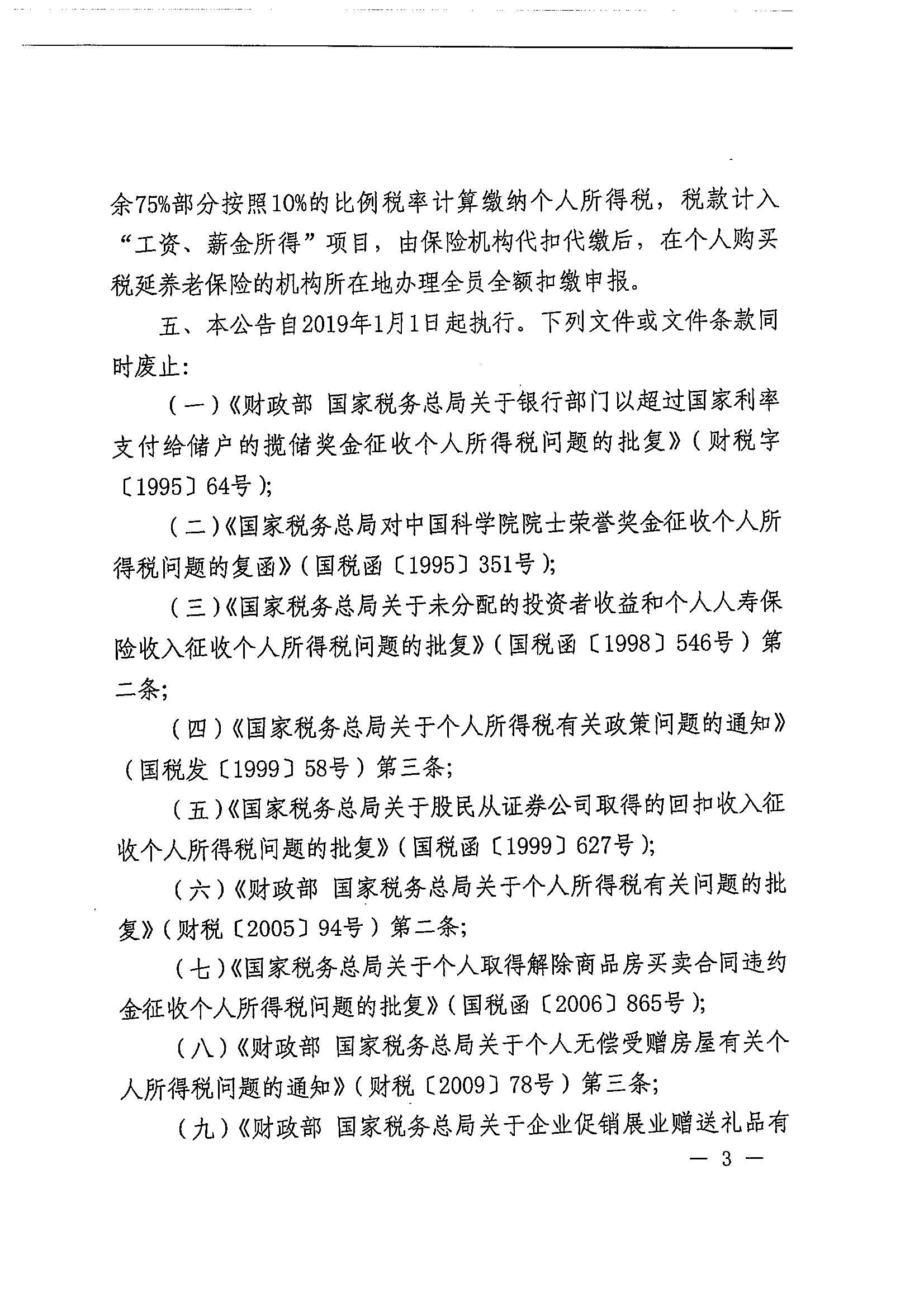 财政部 税务总局关于个人取得有关收入适用个人所得税应税所得项目的公告_政策文件_江门市财政局