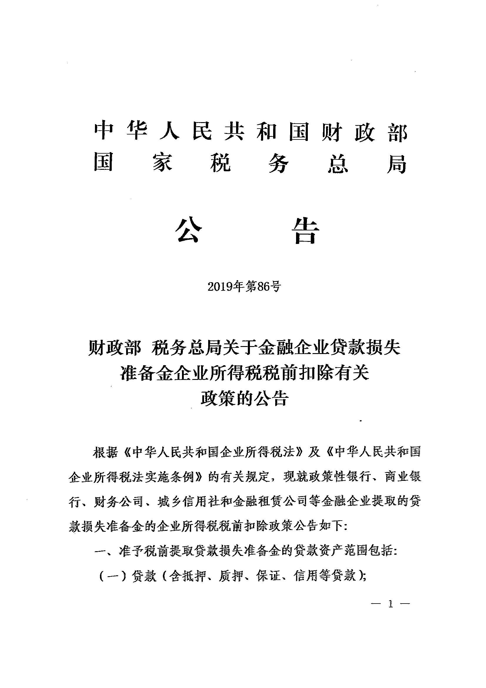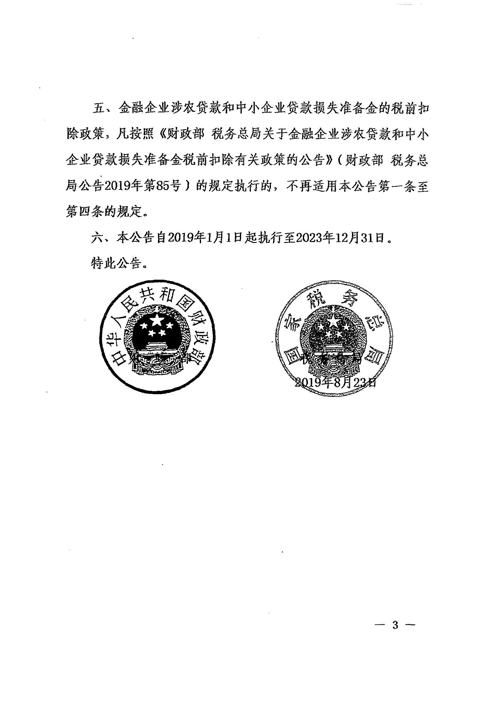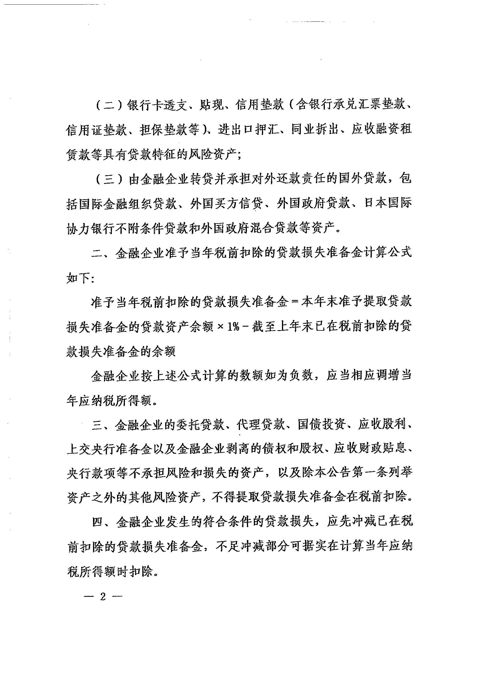 财政部 税务总局关于金融企业贷款损失准备金企业所得税税前扣除有关政策的公告_政策文件_江门市财政局