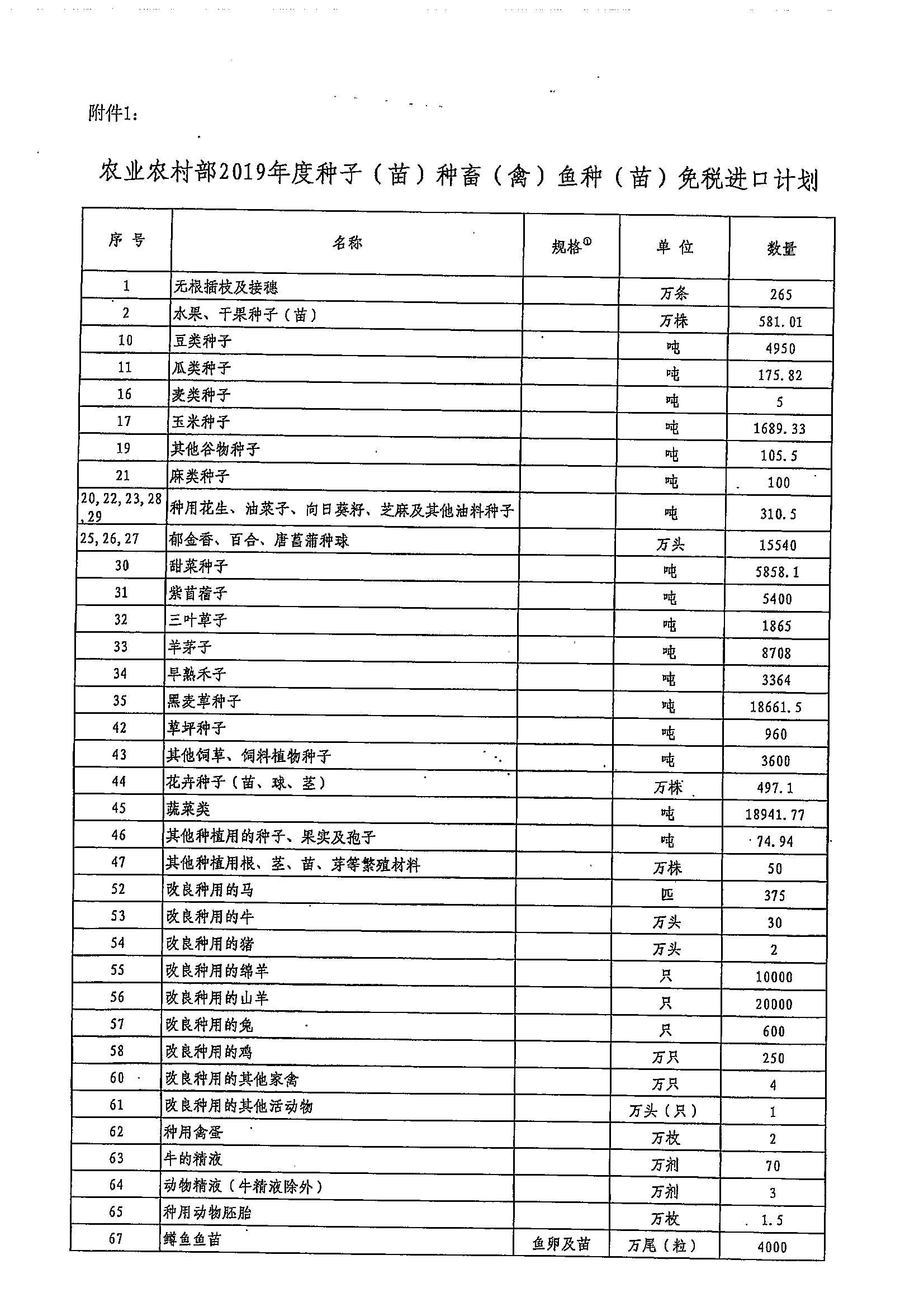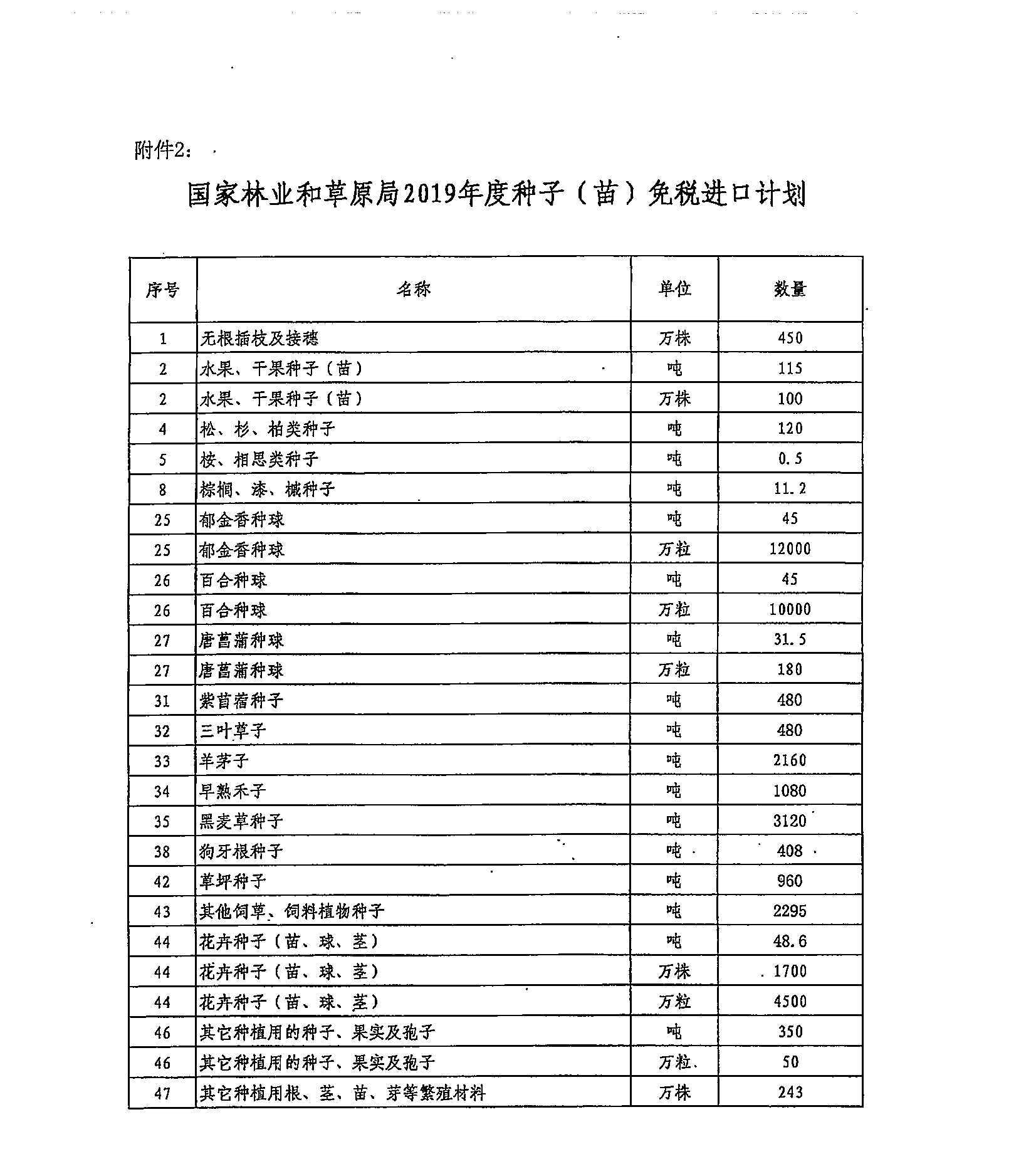 财政部 海关总署 税务总局关于2019年度种子种源免税进口计划的通知