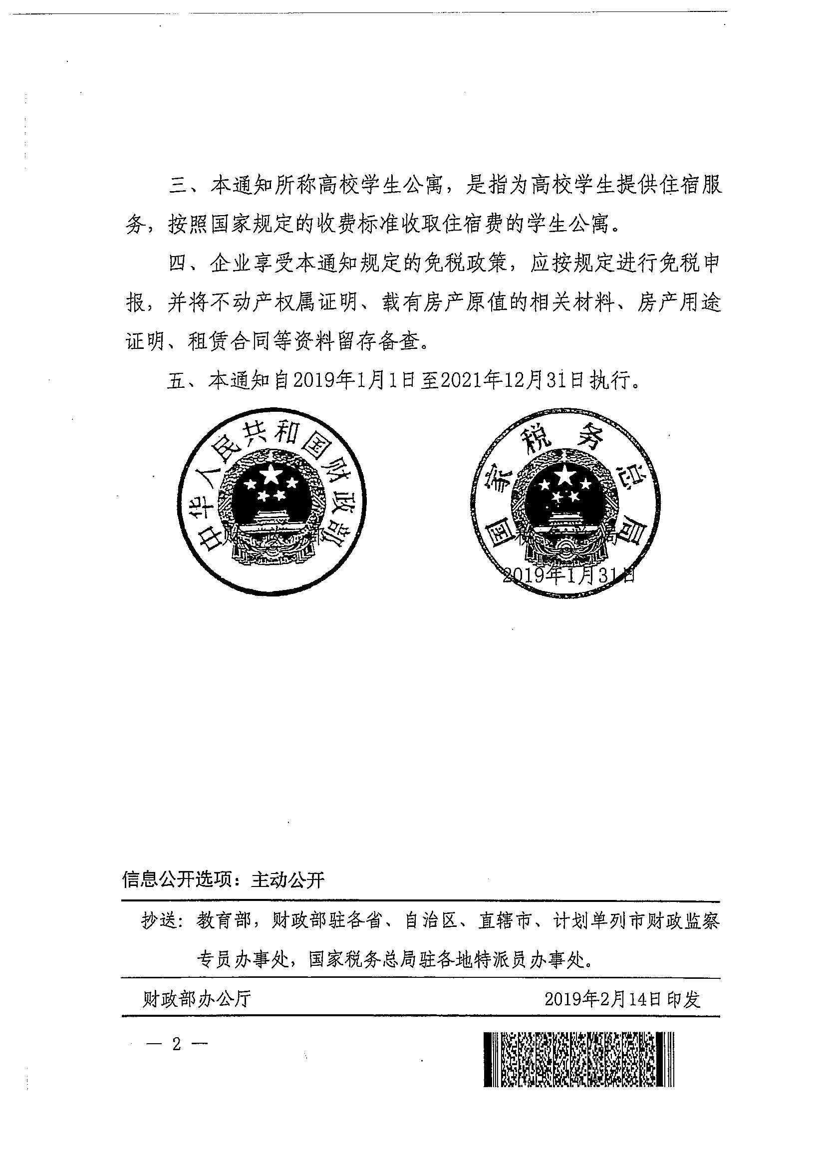 财政部 税务总局关于高校学生公寓房产税 印花税政策的通知_政策文件_江门市财政局