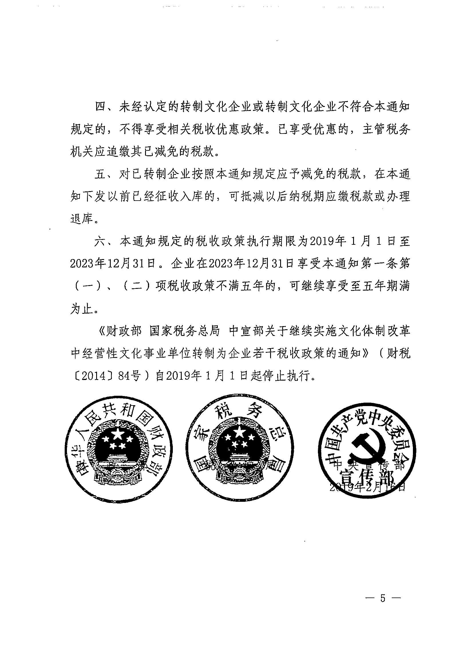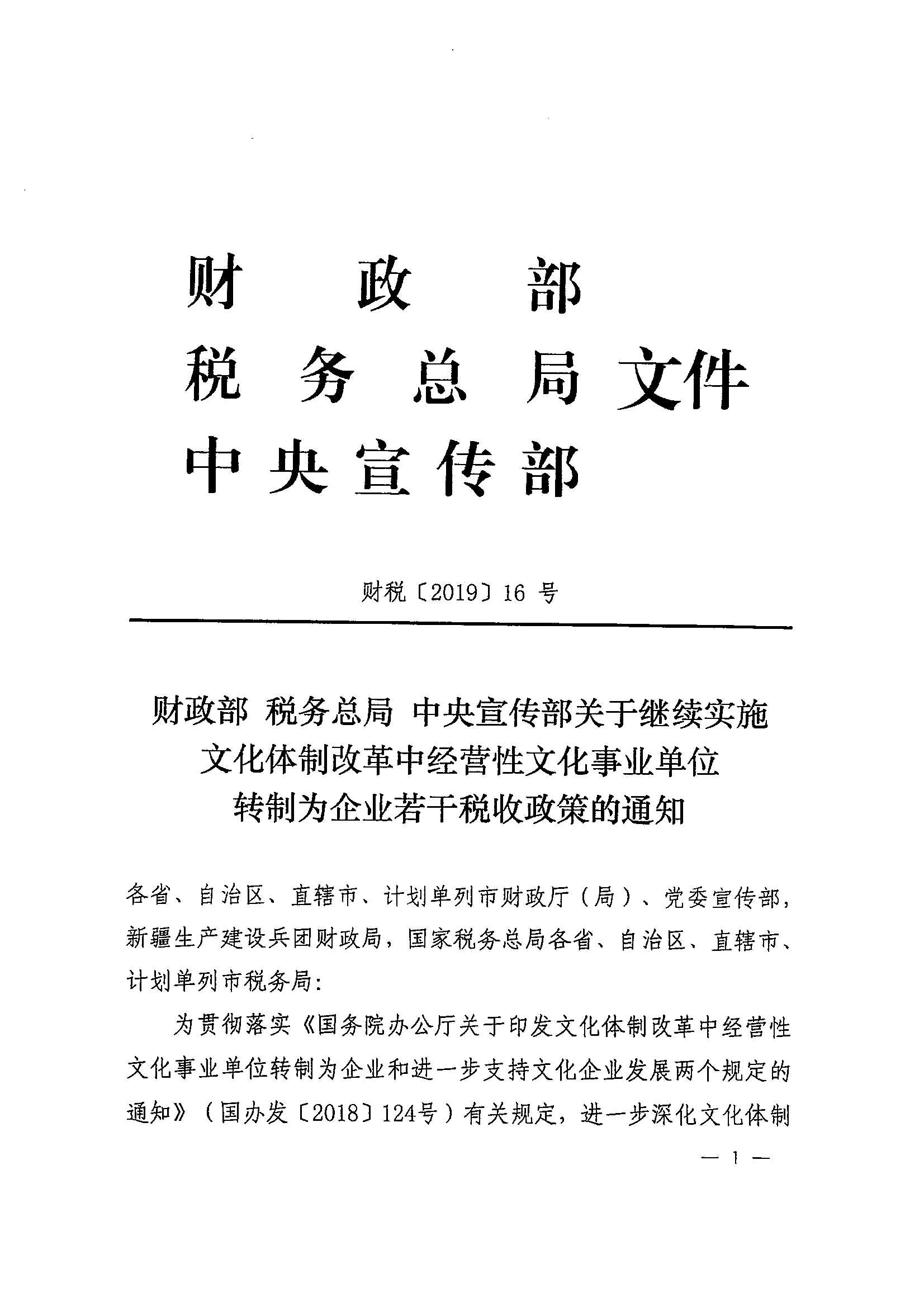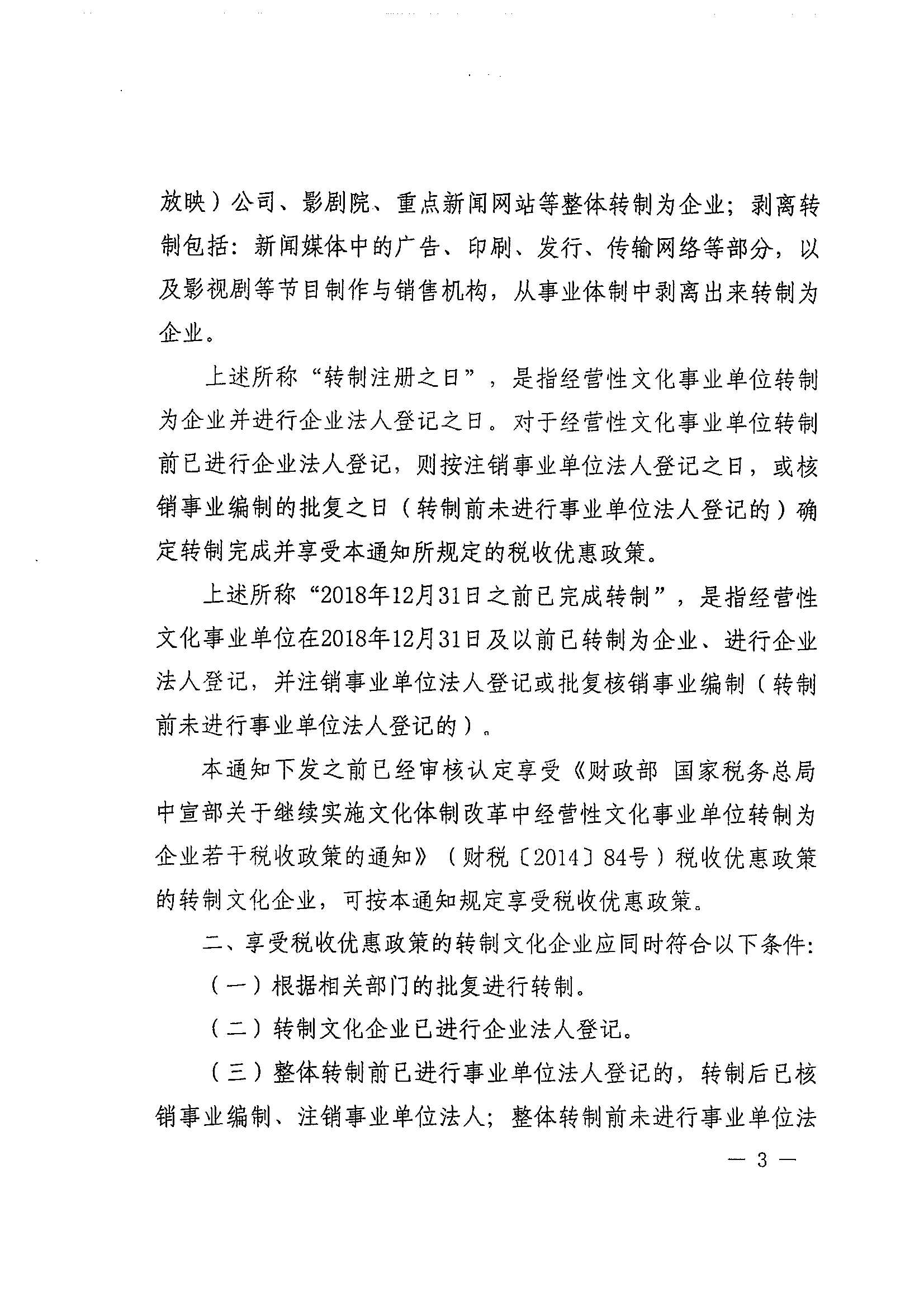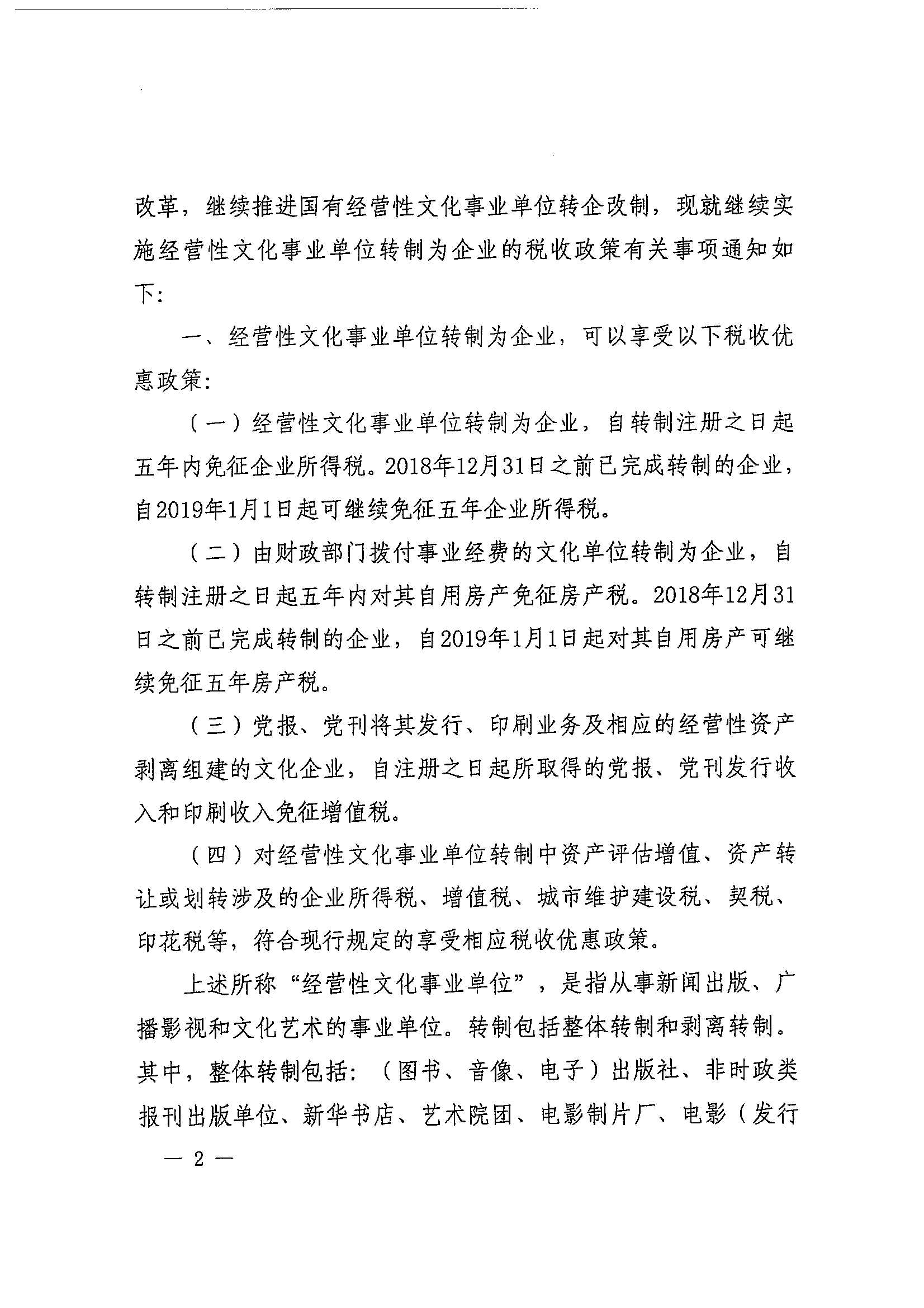 财政部 税务总局 中央宣传部关于继续实施文化体制改革中经营性文化事业单位转制为企业若干税收政策的通知_政策文件_江门市财政局