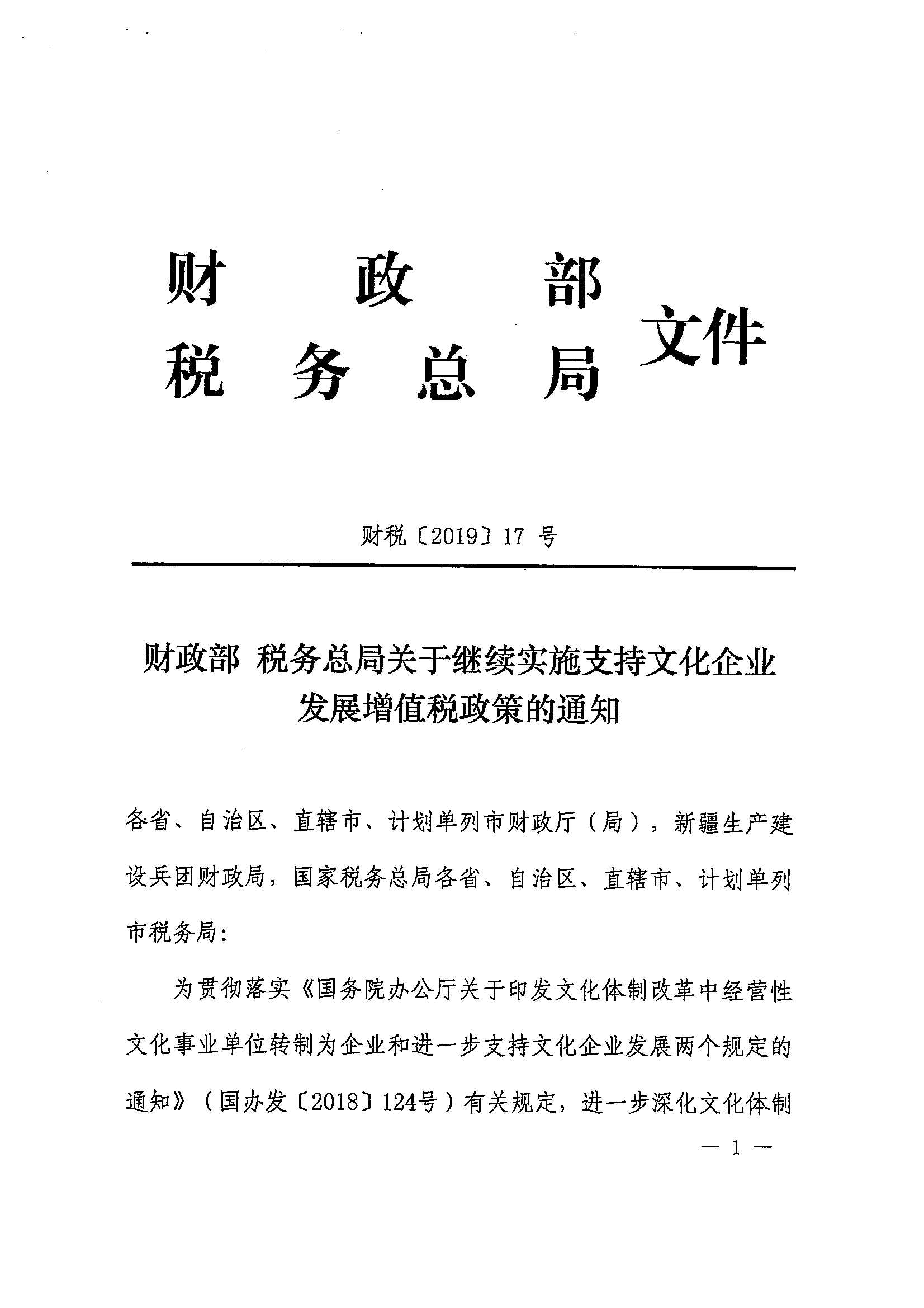 财政部 税务总局关于继续实施支持文化企业发展增值税政策的通知_政策文件_江门市财政局