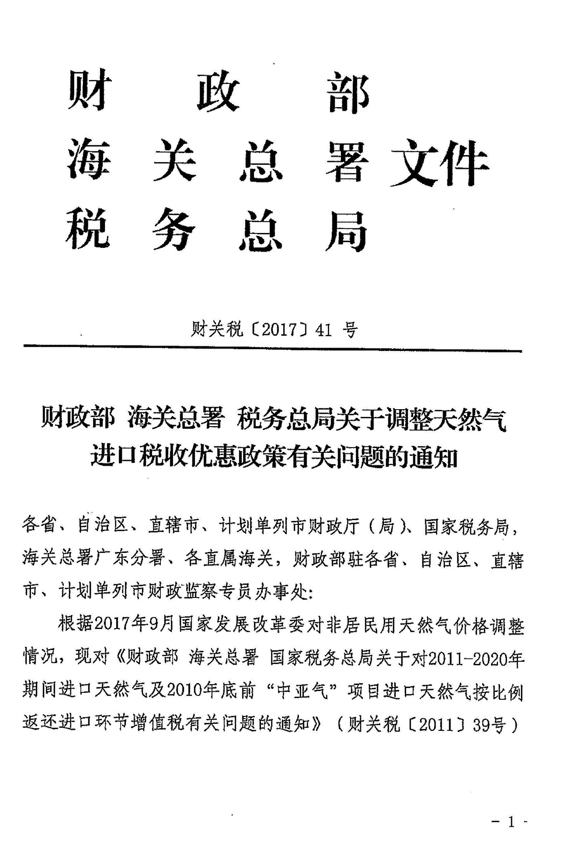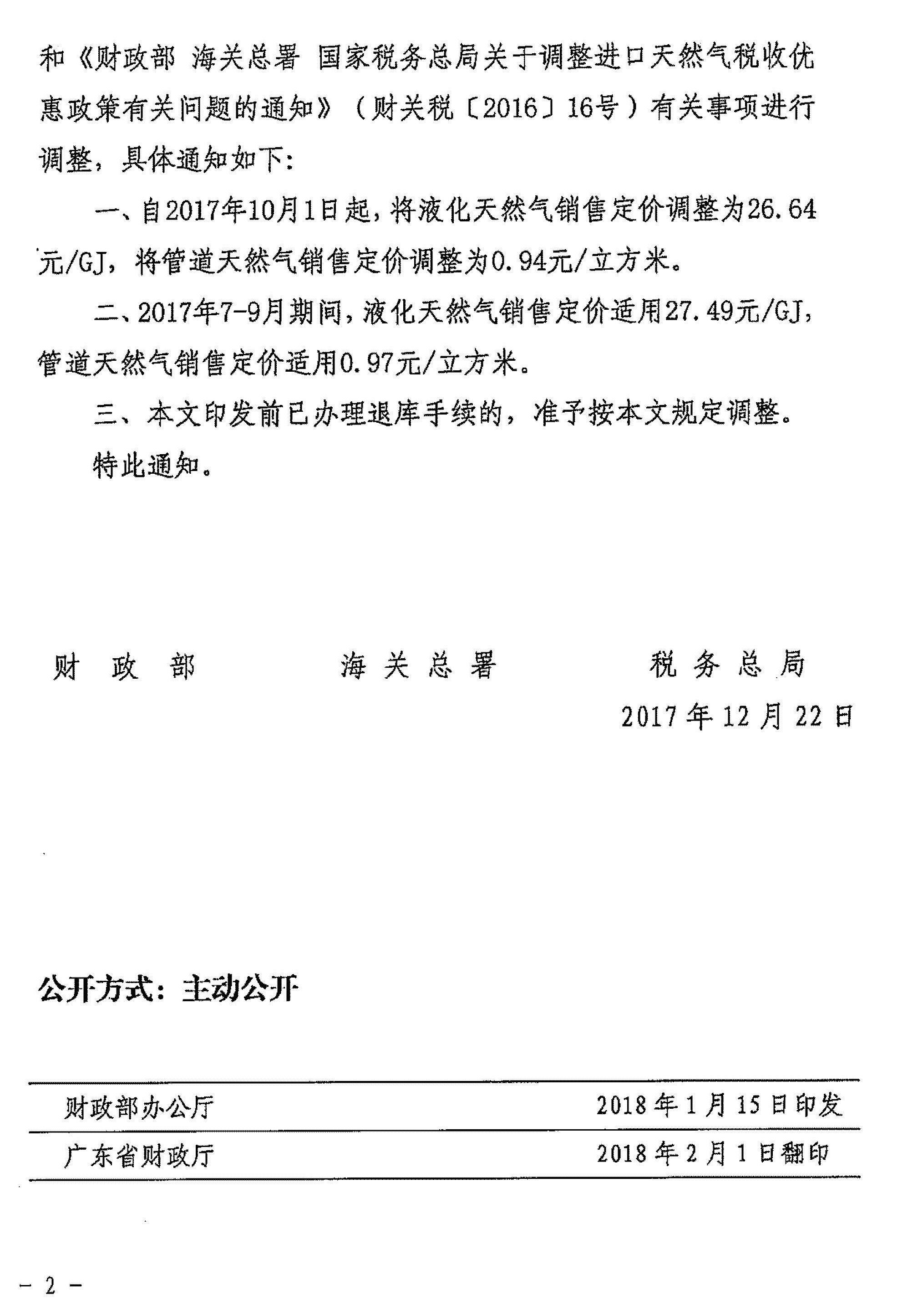 财政部 海关总署 税务总局关于调整天然气进口税收优惠政策有关问题的通知_政策文件_江门市财政局