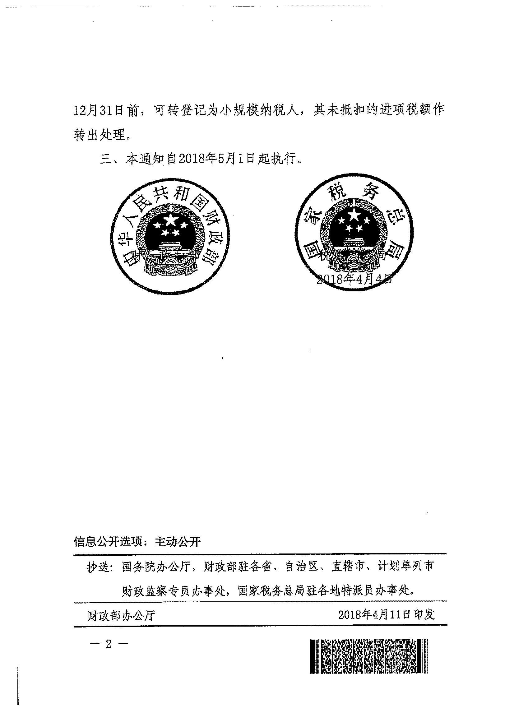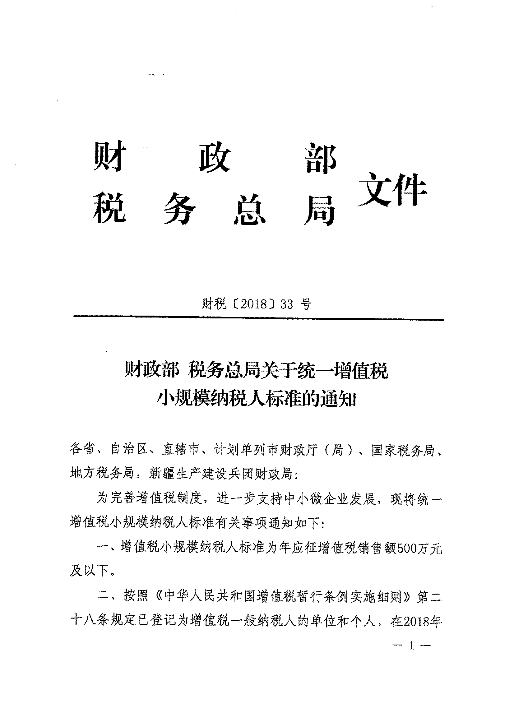 财政部 税务总局关于统一增值税小规模纳税人标准的通知_政策文件_江门市财政局
