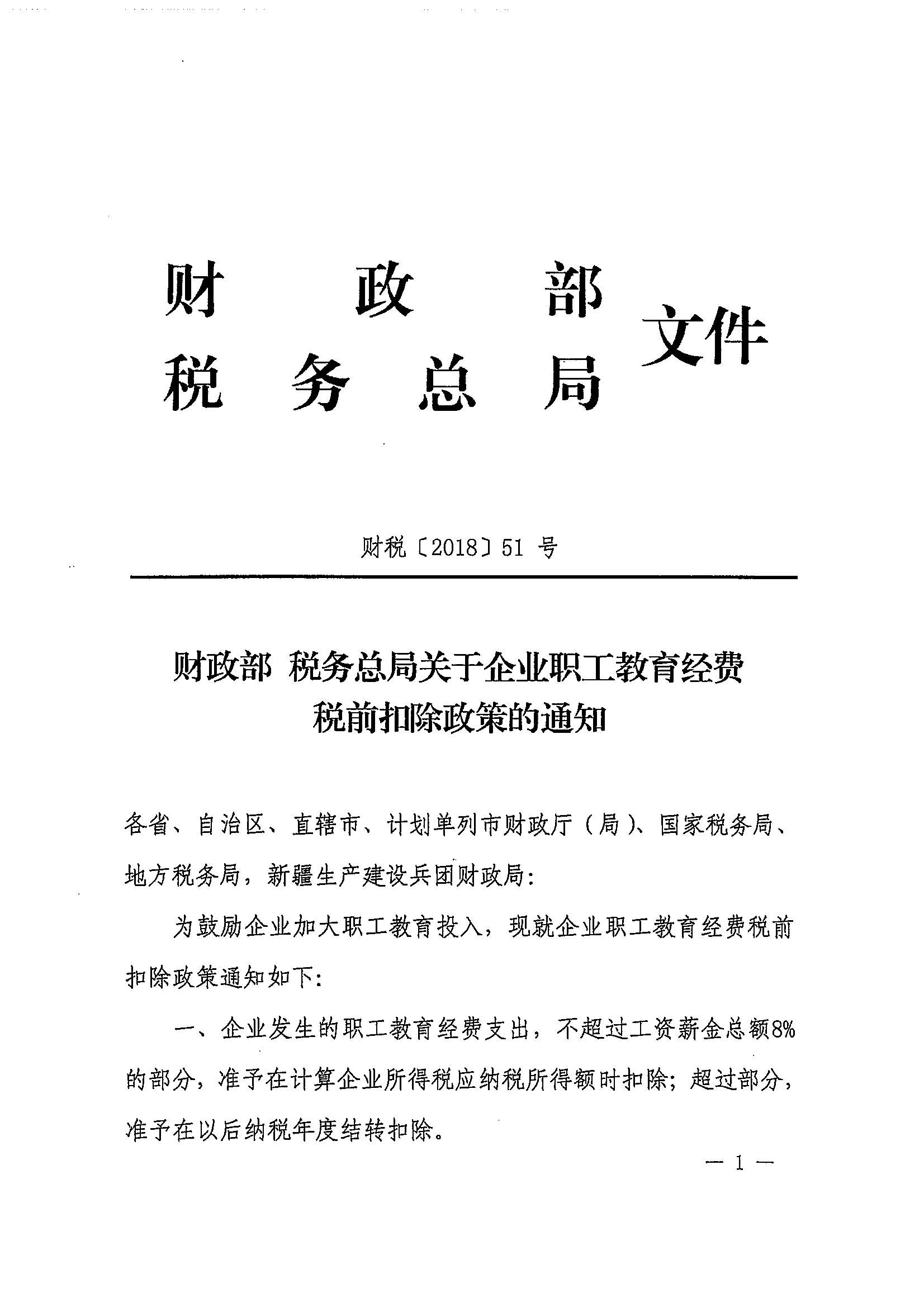 财政部 税务总局关于企业职工教育经费税前扣除政策的通知_政策文件_江门市财政局