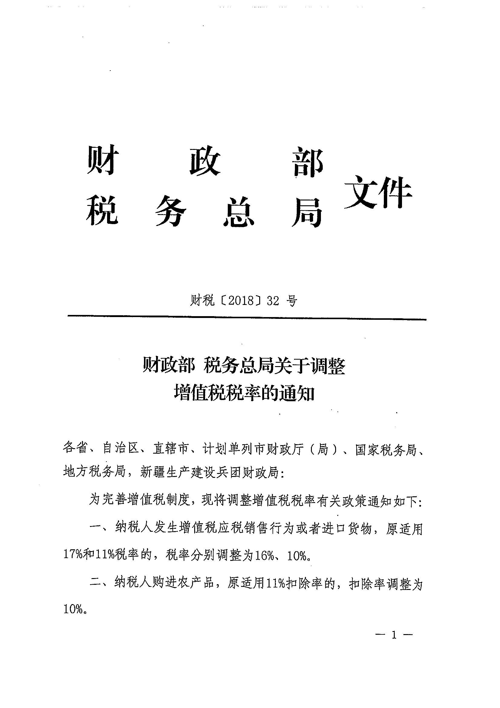 财政部 税务总局关于调整增值税税率的通知_政策文件_江门市财政局