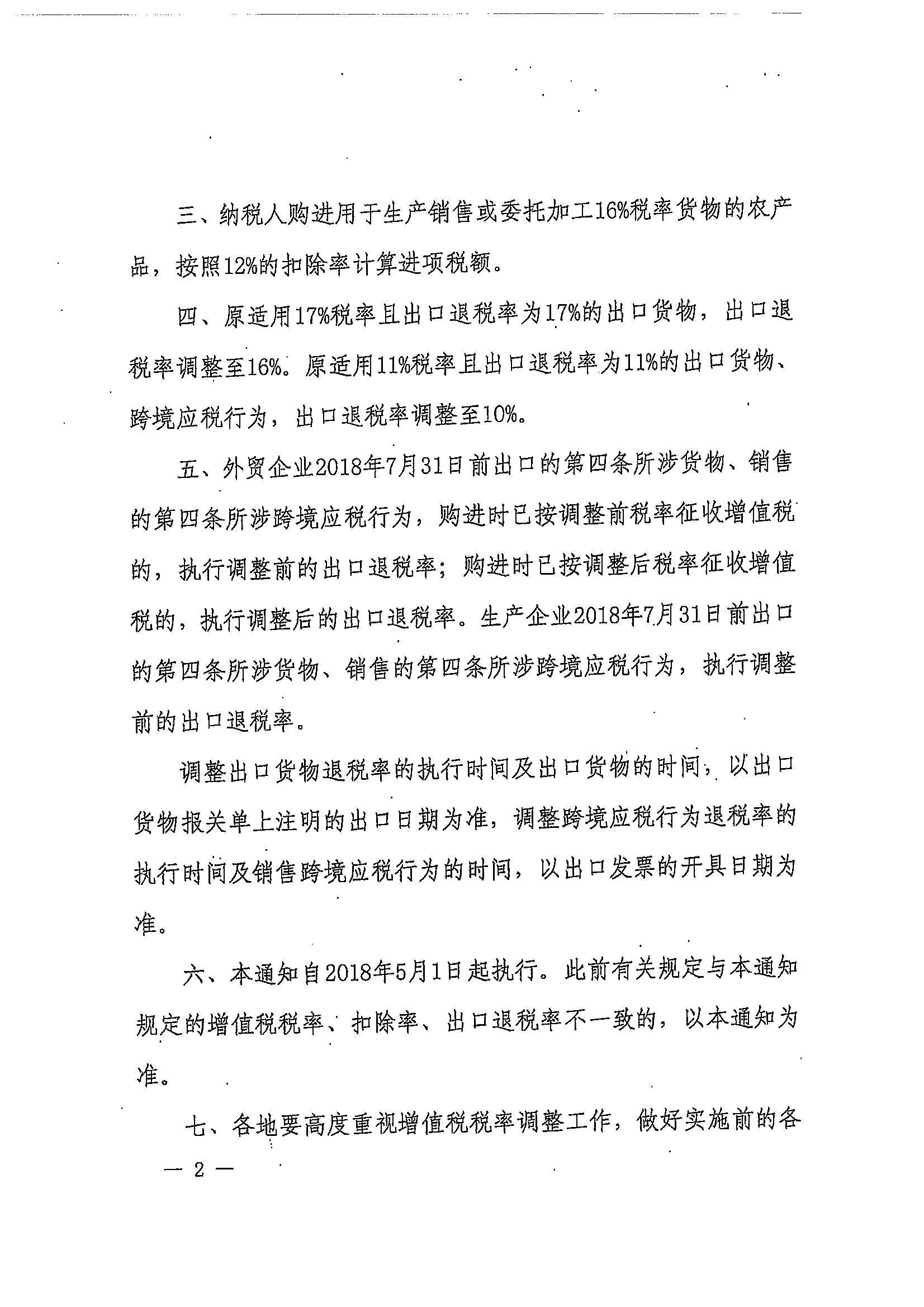 财政部 税务总局关于调整增值税税率的通知