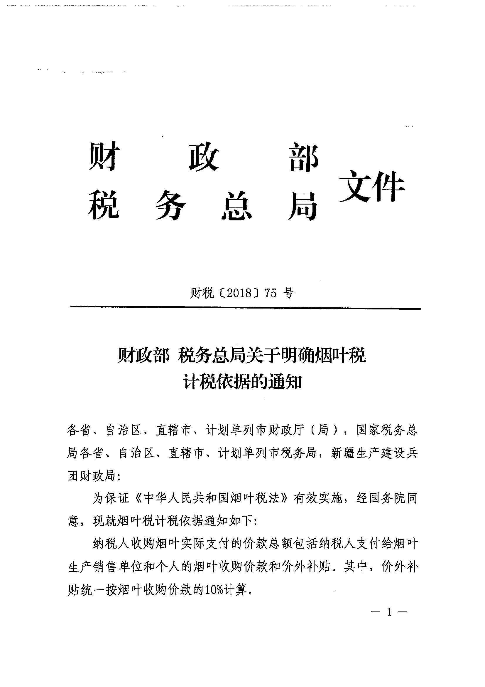 财政部 税务总局关于明确烟叶税计税依据的通知_政策文件_江门市财政局