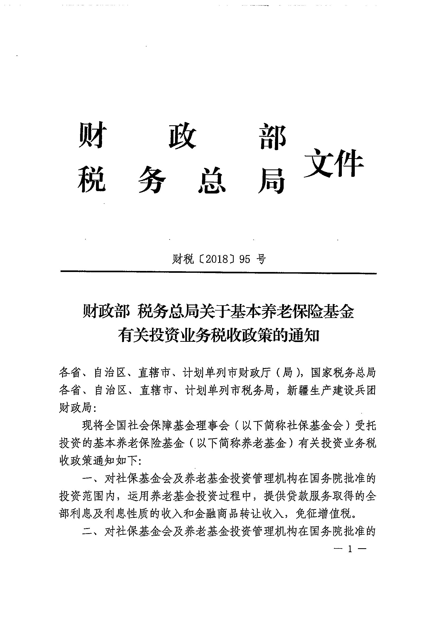 财政部 税务总局关于基本养老保险基金有关投资业务税收政策的通知_政策文件_江门市财政局