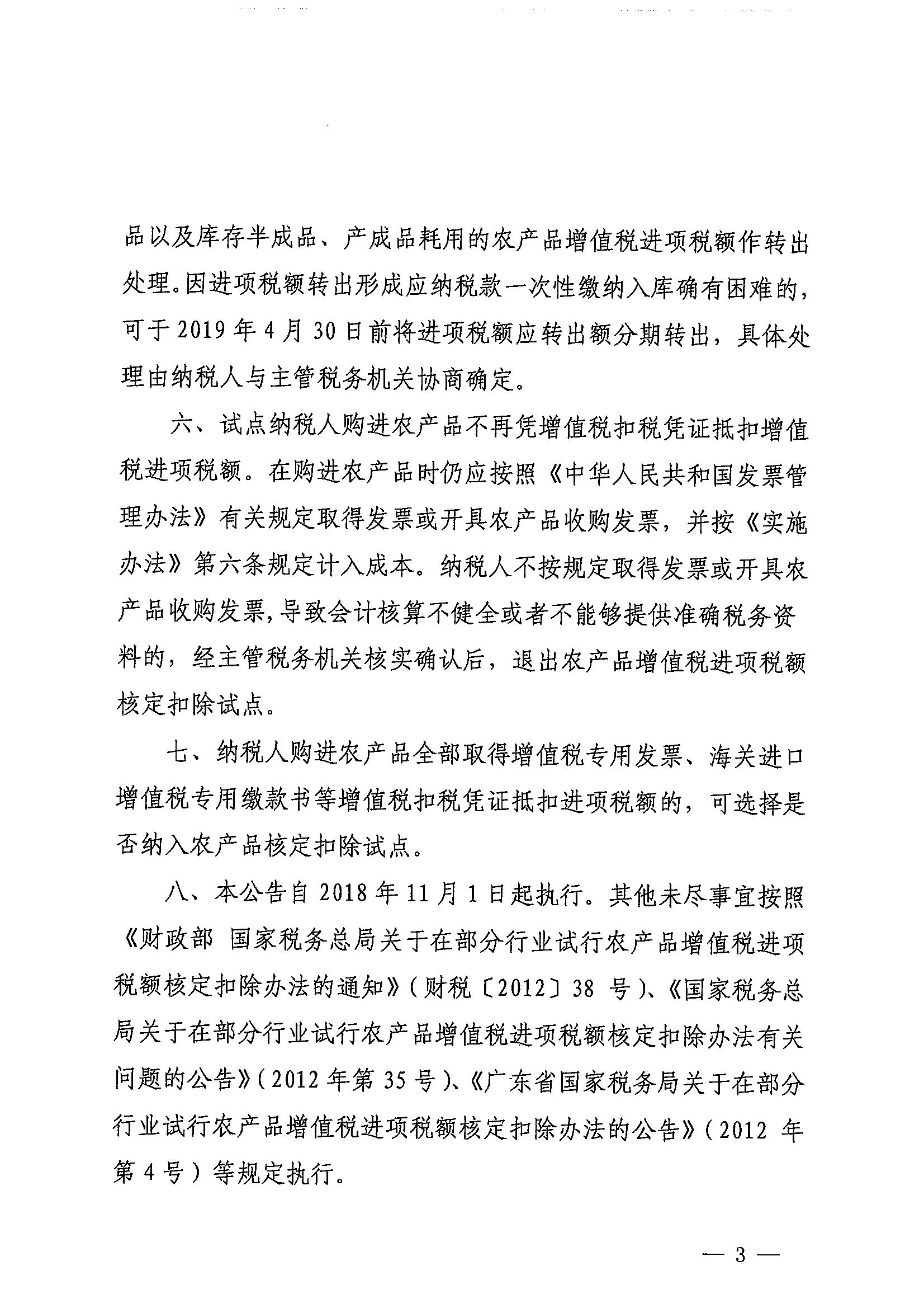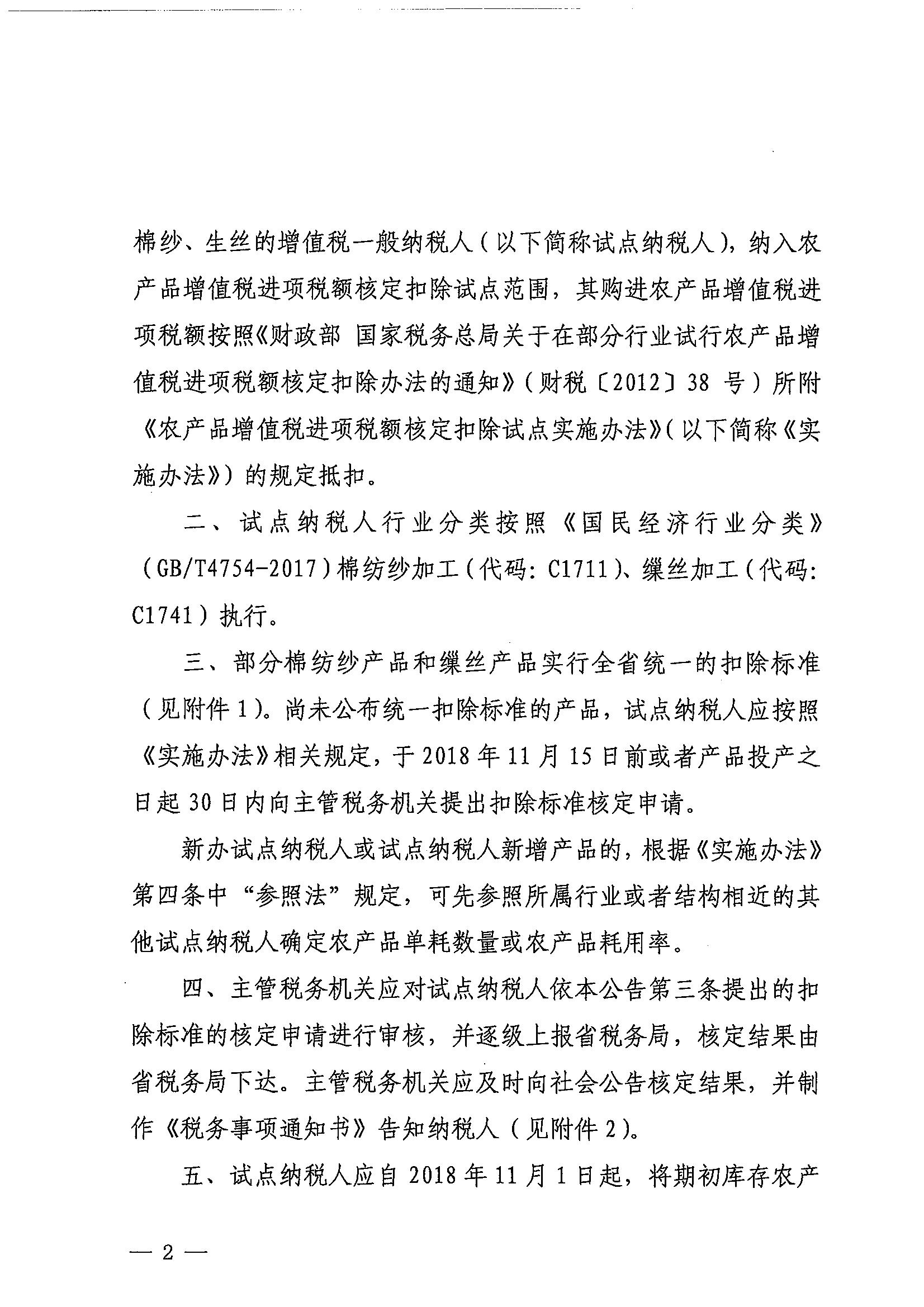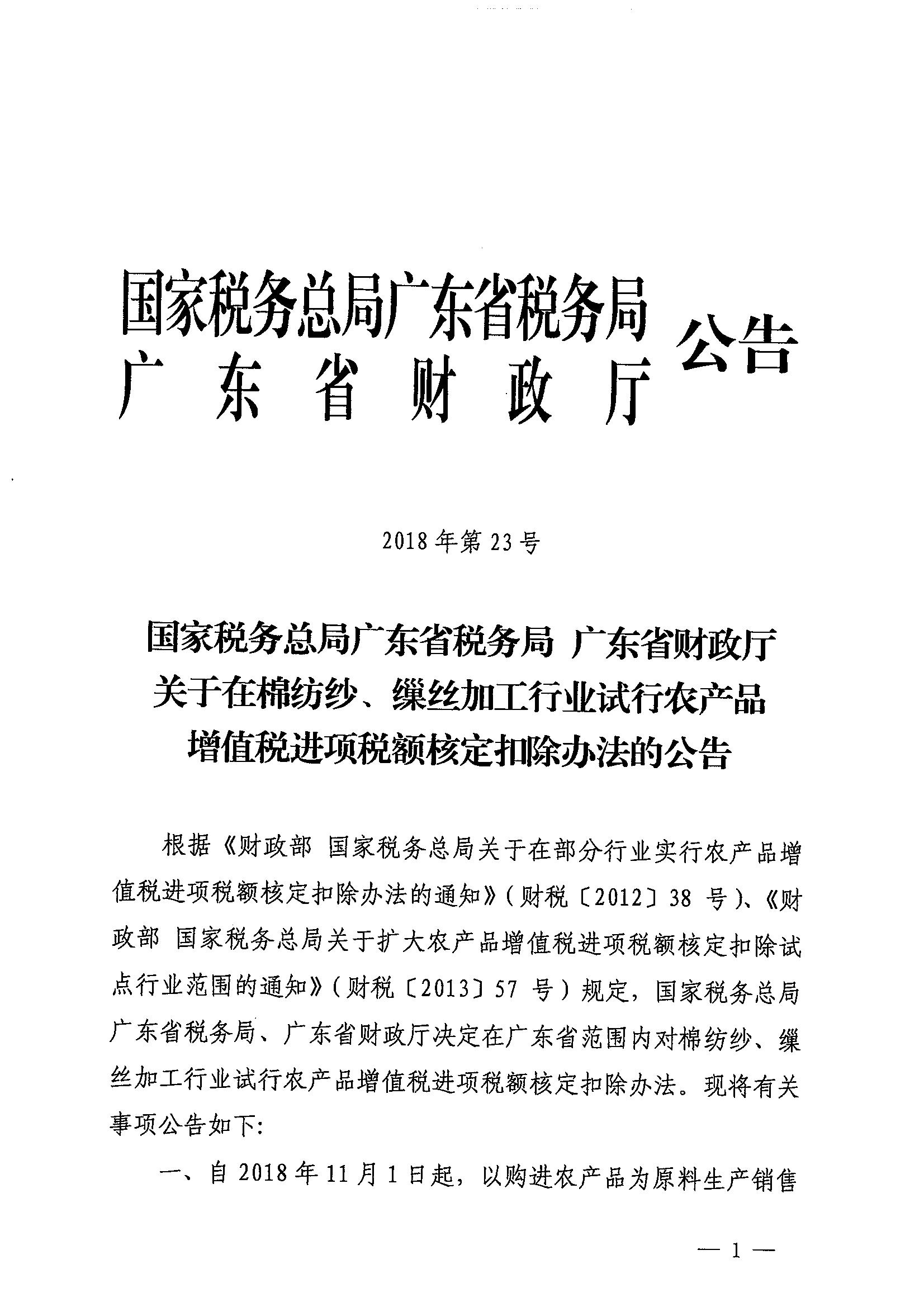 国家税务总局广东省税务局 广东省财政厅关于在棉纺纱、缫丝加工行业试行农产品增值税进项税额核定扣除办法的公告_政策文件_江门市财政局