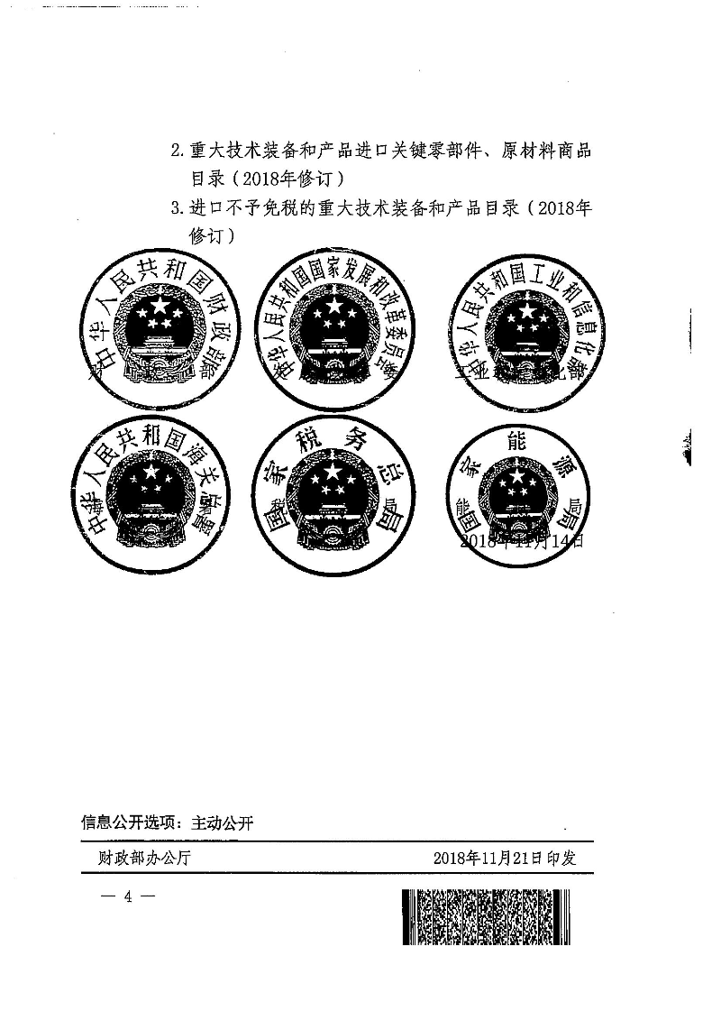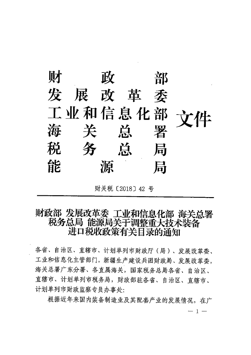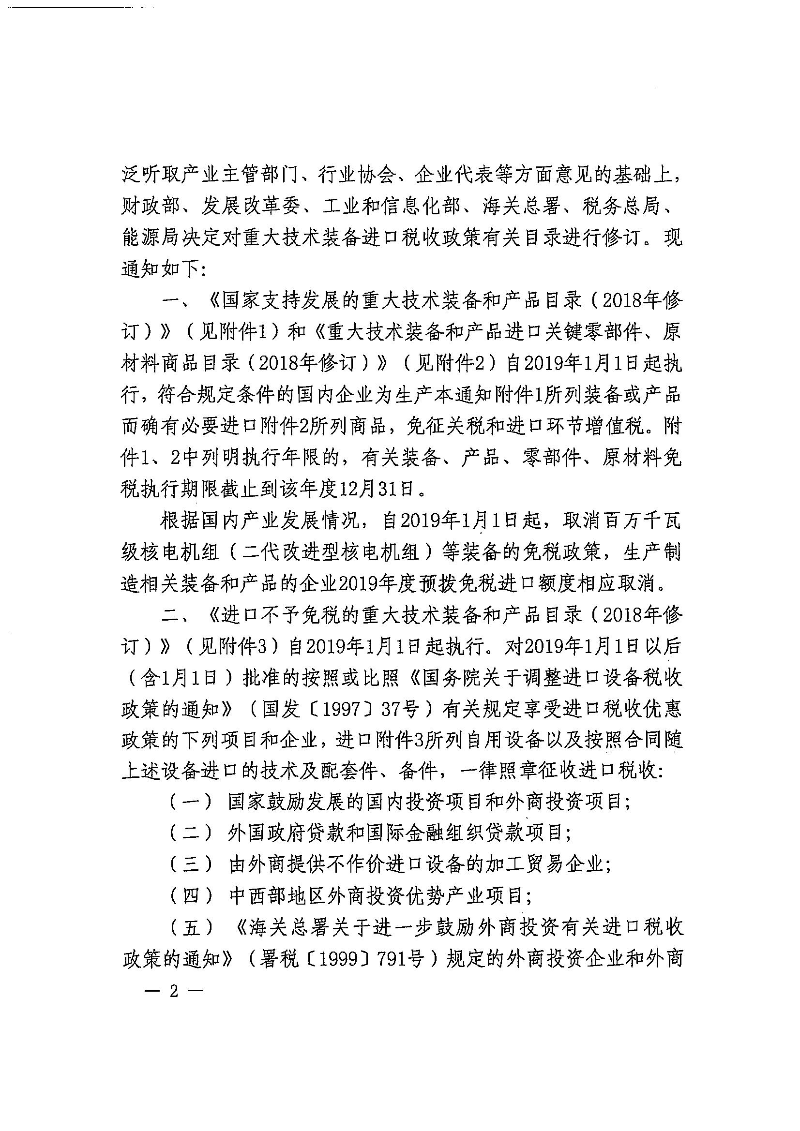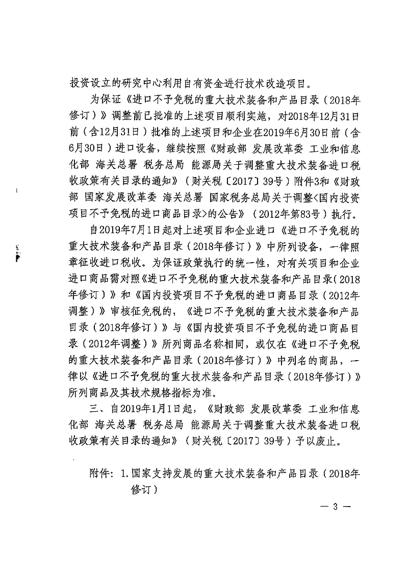 财政部 发展改革委 工业和信息化部 海关总署 税务总局 能源局关于调整重大技术装备进口税收政策有关目录的通知_政策文件_江门市财政局
