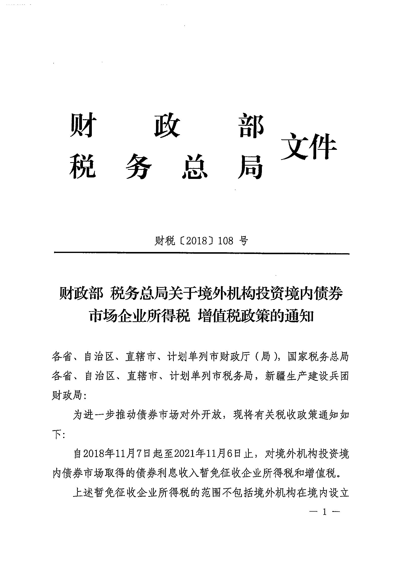 财政部 税务总局关于境外机构投资境内债券市场企业所得税 增值税政策的通知_政策文件_江门市财政局