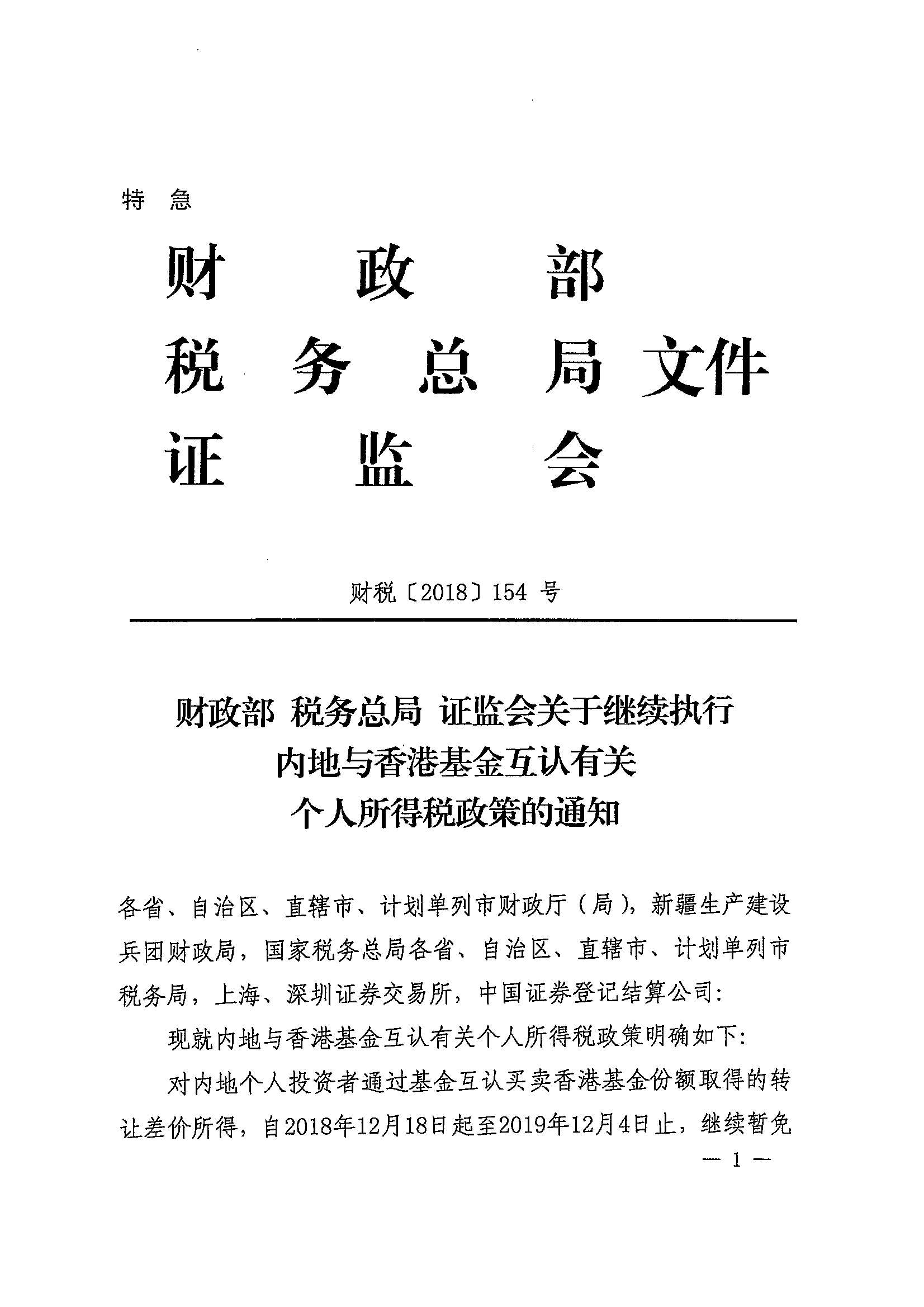 财政部 税务总局 证监会关于继续执行内地与香港基金互认有关个人所得税政策的通知_政策文件_江门市财政局