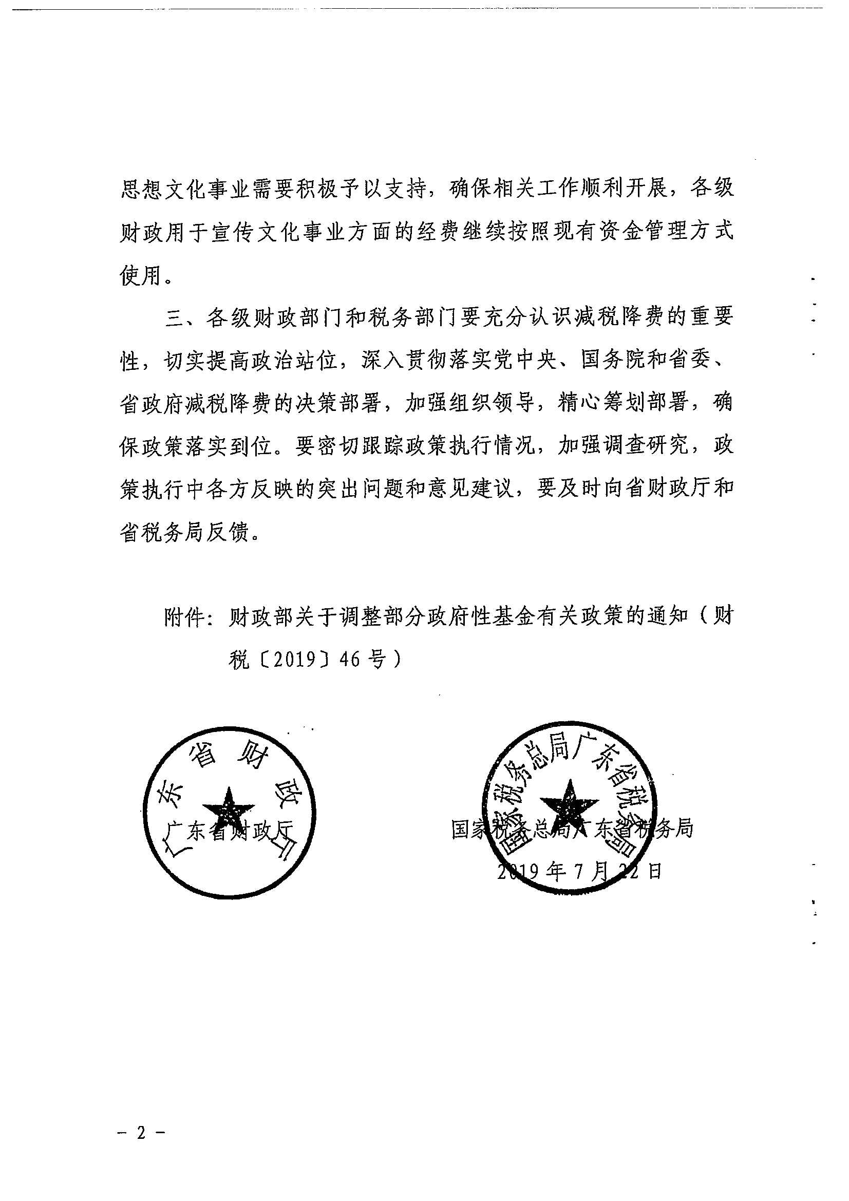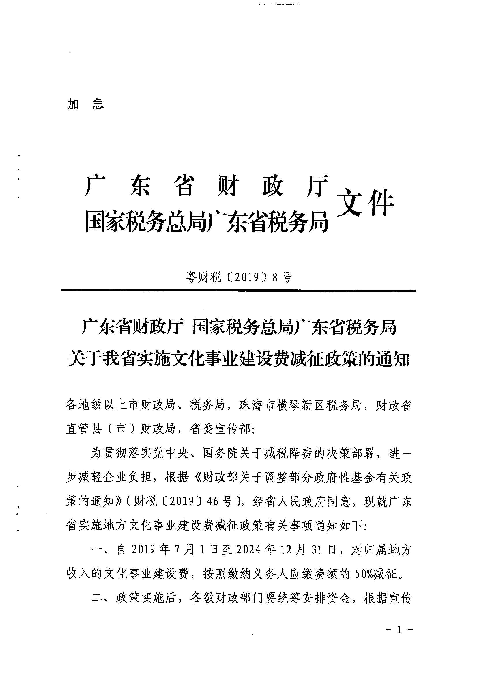 广东省财政厅 国家税务总局广东省税务局关于我省实施文化事业建设费减征政策的通知_税收政策_江门市财政局