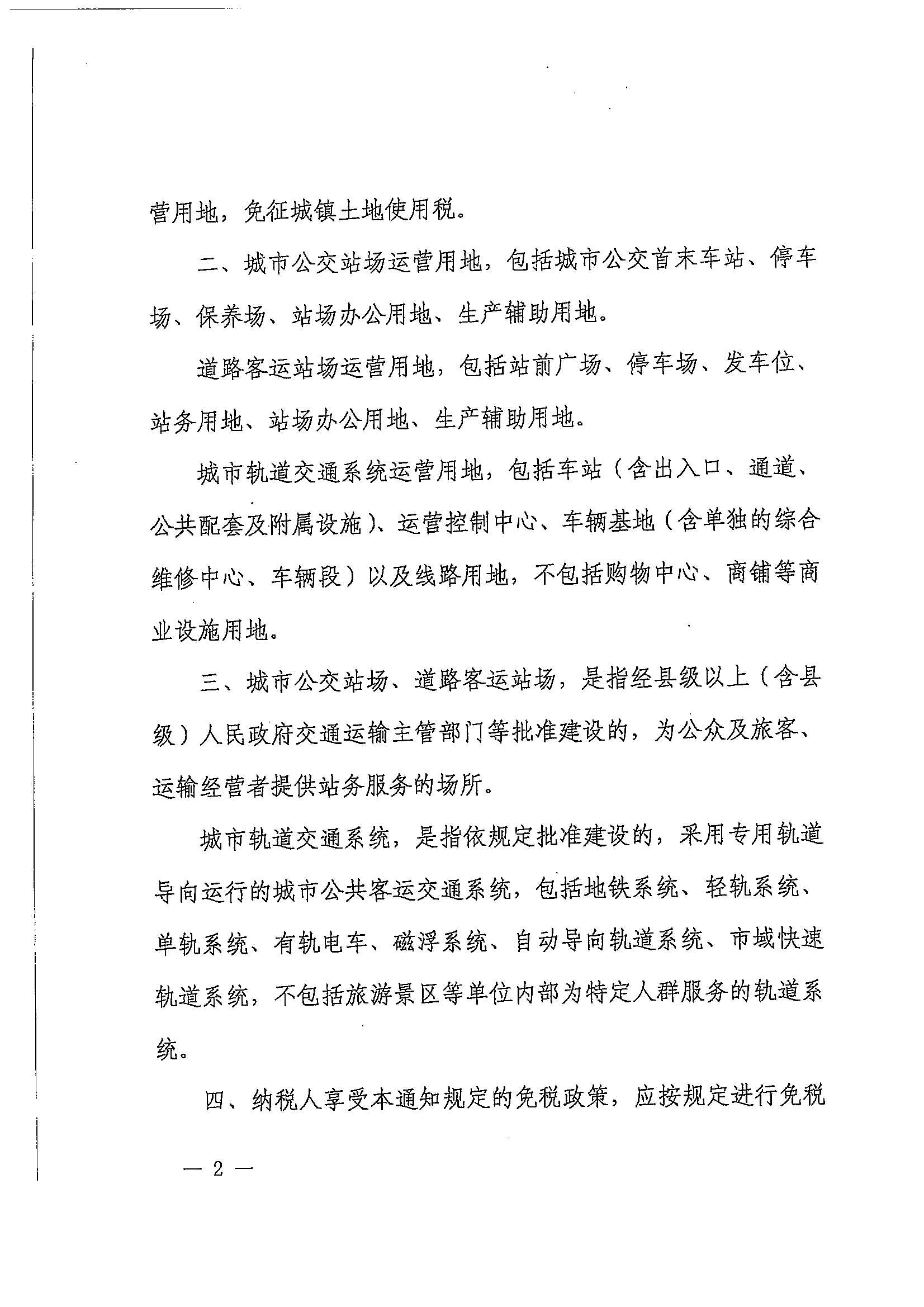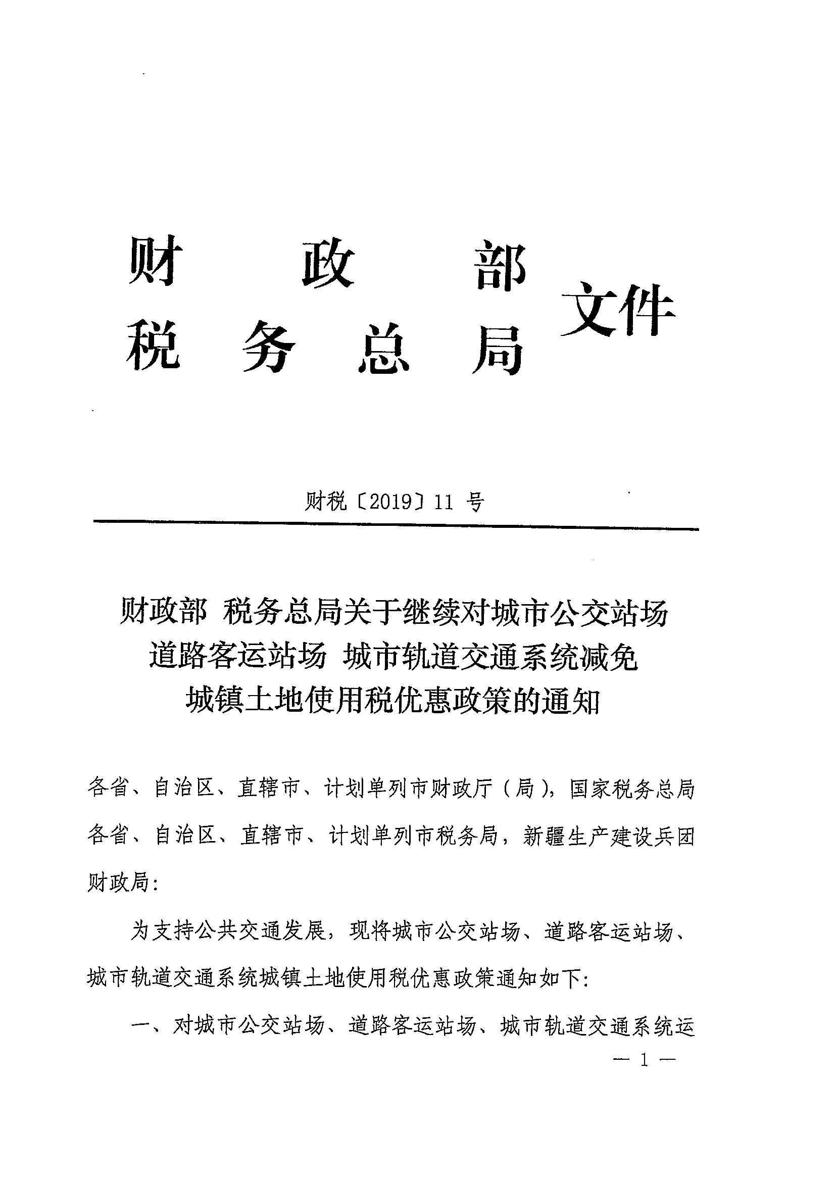 财政部 税务总局关于继续对城市公交站场道路客运站场 城市轨道交通系统减免城镇土地使用税优惠政策的通知_税收政策_江门市财政局