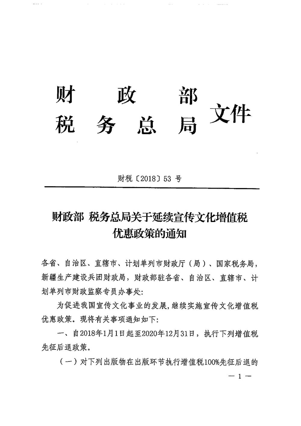 财政部 税务总局关于延续宣传文化增值税优惠政策的通知_税收政策_江门市财政局
