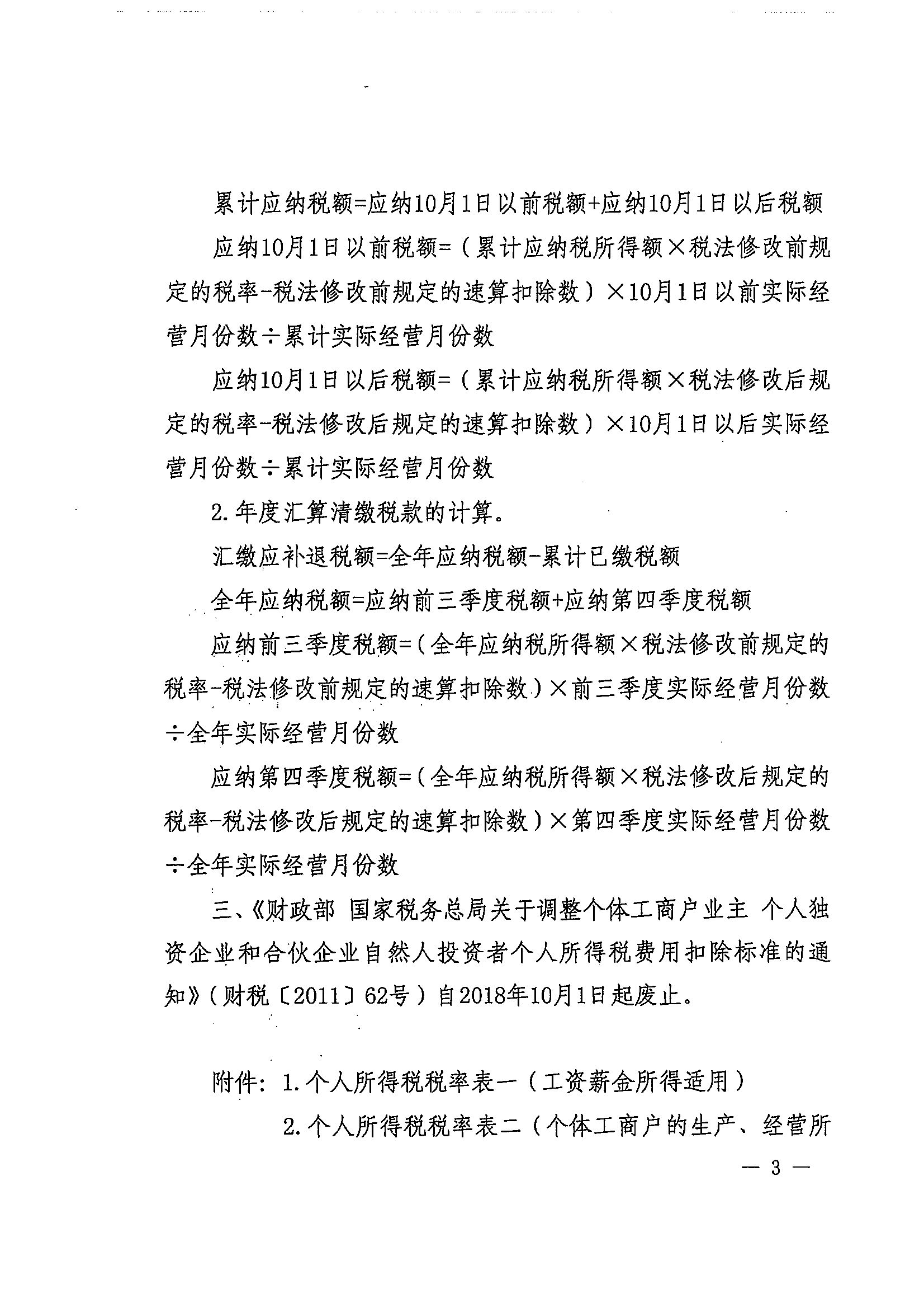 财政部 税务总局关于2018年第四季度个人所得税减除费用和税率适用问题的通知_税收政策_江门市财政局