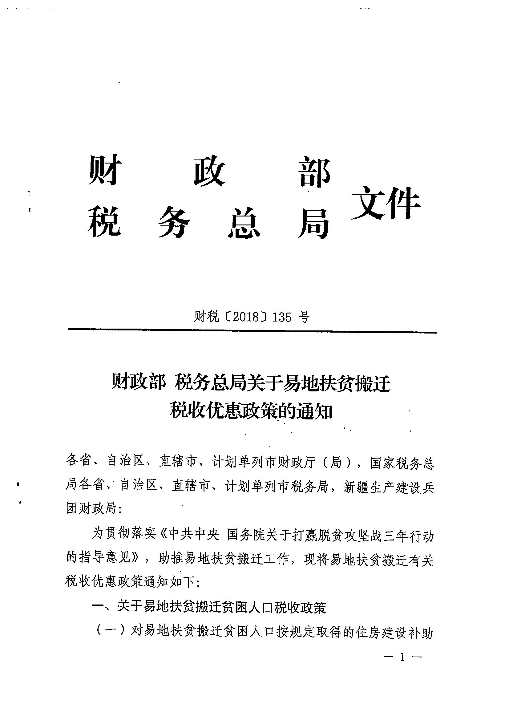 财政部 税务总局关于易地扶贫搬迁税收优惠政策的通知_税收政策_江门市财政局