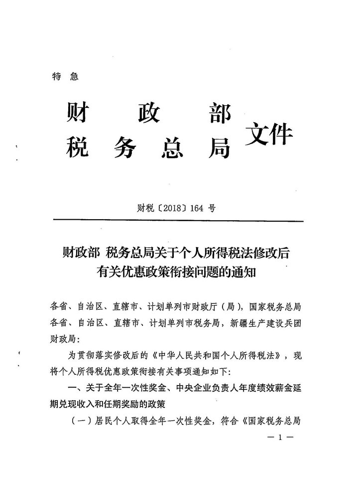 财政部 税务总局关于个人所得税法修改后有关优惠政策衔接问题的通知_税收政策_江门市财政局