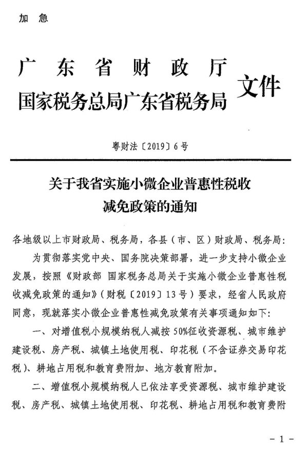 关于我省实施小微企业普惠性税收减免政策的通知_税收政策_江门市财政局