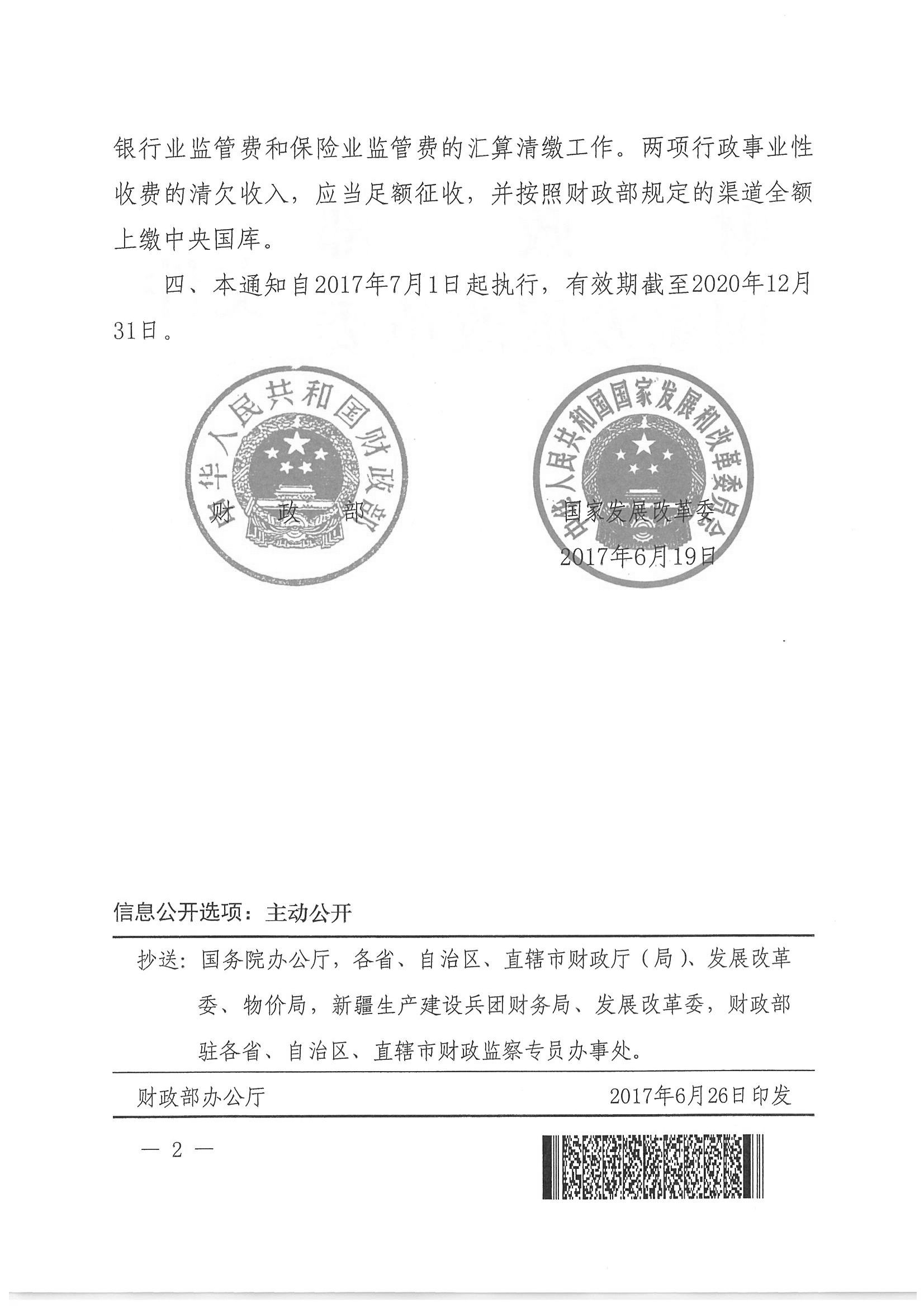 财政部 国家发展改革委关于暂 免征银行业监管费和保险业监管费的通知_政府性基金项目目录_江门市财政局