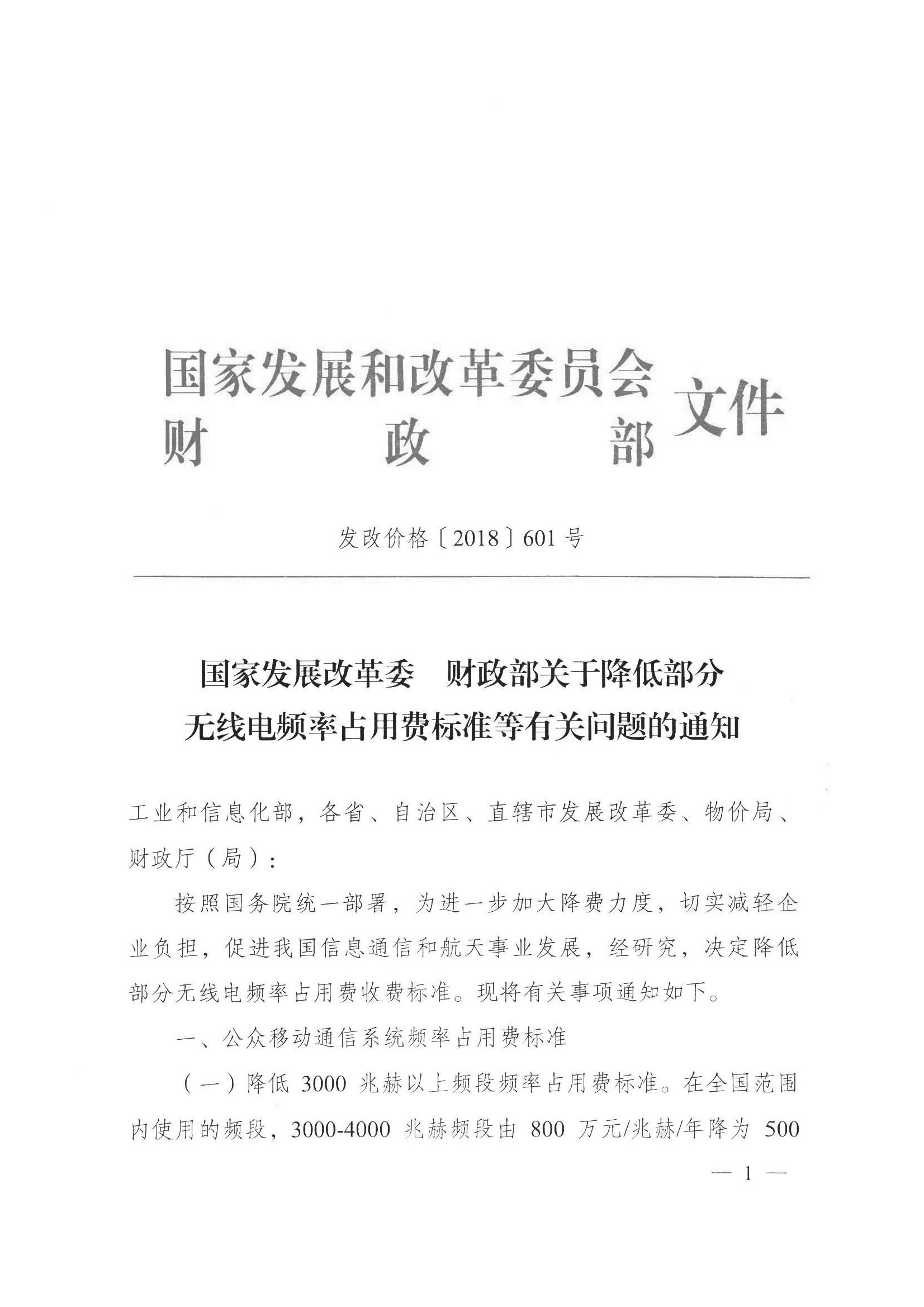 - 来源:国家发展改革委财政部关于 降低部分无线电频率占用费标准等有关问题的通知