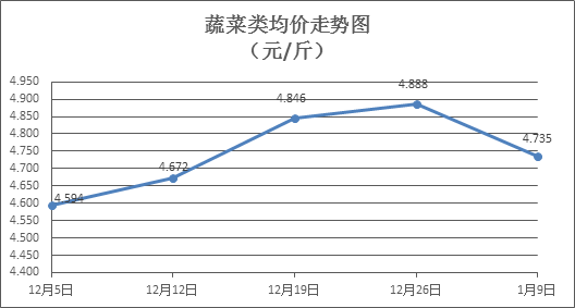蔬菜类商品价格总体下降。本周所监测的32 种蔬菜商品价格波动情况为11涨20跌1平,综合零售均价为4.735元/斤,环比下降3.31%。其中:涨幅居前的品种包括青豆角、茄子、白萝卜,零售均价分别为每斤7.30元、4.39元、2.25元,环比分别上涨5.64%、4.52%、2.74%;跌幅居前的品种包括西洋菜、本地菜心、芥兰,零售均价分别为每斤5.06元、5.36元、5.65元,环比分别下降15.81%、15.32%、13.34%。