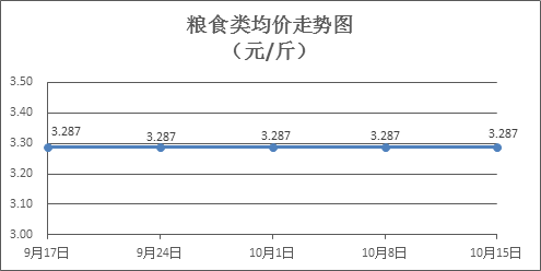 粮食类商品价格保持稳定。上周所监测的6种粮食类商品价格环比均持平,综合零售均价为3.287元/斤。其中:晚籼米、油粘米、标准粉零售均价分别为每斤3.24元、3.42元、3.15元,环比均持平。