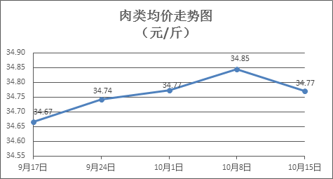 肉类商品价格略有下降。上周所监测的8种肉类商品价格均下跌,综合零售均价为34.77元/斤,环比下降0.22%。其中:排骨、精瘦肉、有皮上肉、牛肉、带骨羊肉零售均价分别为每斤30.08元、19.17元、14.53元、53.98元、44.45元,环比分别下降0.07%、下降0.10%、下降0.07%、下降0.53%、下降0.22%。