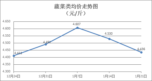 据本市21家农贸市场监测数据显示,上周(1月15日至1月21日,下同)市场上各类“菜篮子”商品供应充足,所监测的7大类“菜篮子”商品价格4涨3跌。其中:粮油类商品价格稳中略涨,肉菜类、禽蛋类商品价格总体略降,水果类、水产类商品价格窄幅盘升。受冷空气南下叠加春节备货需求的影响,预计近期部分农产品价格或略有上涨。