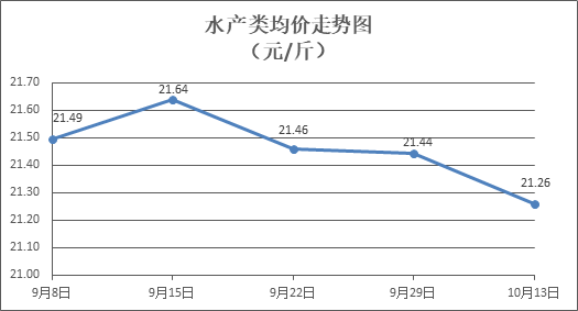 水产类商品价格略有下降。所监测的9种水产商品价格波动情况为1涨7跌1平,综合均价为每斤21.26元,环比下降0.87%。其中:草鱼、鲫鱼、罗非鱼、基围虾零售均价分别为每斤11.04元、13.89元、9.04元、30.46元,环比分别下降0.81%、下降0.36%、持平、下降0.23%。