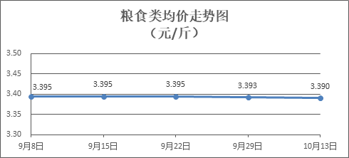 粮食类商品价格基本平稳。所监测的4种粮食类商品价格波动情况为1跌3平,零售均价为每斤3.390元,环比下降0.07%。其中:丝苗米、富强粉零售均价分别为每斤3.57元、3.36元,环比分别下降0.28%、持平。