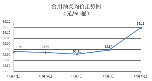 食用油类商品价格微幅上涨。所监测的9种食用油(5L装)商品价格波动情况为7涨2平,综合零售均价为每桶96.15元,环比上涨0.21%。其中:金龙鱼花生油、大豆油零售均价为每桶103.29元、62.58元,环比分别上涨0.38%、上涨0.16%。