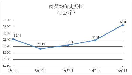 肉类商品价格小幅上涨。所监测的8种肉类商品价格波动情况为5涨2跌1平,综合零售均价为每斤32.85元,环比上涨1.42%。其中:排骨、精瘦肉、牛肉、带骨羊肉零售均价分别为每斤31.88元、20.06元、46.69元、42.62元,环比分别上涨0.69%、下降0.40%、上涨2.26%、上涨2.95%。