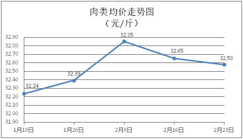 据本市21家农贸市场监测数据显示,上周(2月17日至2月23日)市场上各类“菜篮子”商品供应充足,所监测的7大类“菜篮子”商品价格环比总体表现为1涨4跌2平。其中:粮油类商品价格基本平稳,肉禽蛋类、蔬菜类、水产类商品价格小幅下降,水果类价格总体略涨。