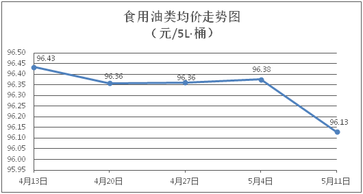 食用油类商品价格总体微降。所监测的9种食用油(5L装)商品价格波动情况为2涨5跌2平,综合零售均价为每桶96.13元,环比下降0.26%。其中:金龙鱼花生油、玉米油零售均价为每桶102.36元、76.20元,环比分别下降0.34%、下降0.54%。