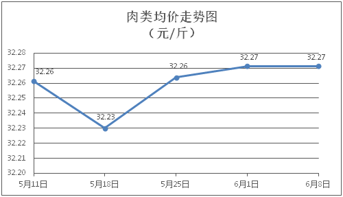 肉类商品价格窄幅盘整。所监测的8种肉类商品价格波动情况为3涨4跌1平,综合零售均价为每斤32.27元,环比持平。其中:排骨、精瘦肉、肋条肉、牛肉、带骨羊肉零售均价分别为每斤30.37元、19.14元、16.02元、46.38元、42.47元,环比分别下降1.01%、下降0.21%、下降0.44%、上涨0.04%、上涨1.02%。