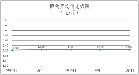 粮食类商品价格保持稳定。所监测的4种粮食类商品价格均持平,综合零售均价为每斤3.385元。其中:丝苗米、面粉零售均价分别为每斤3.50元、3.40元,环比均持平。